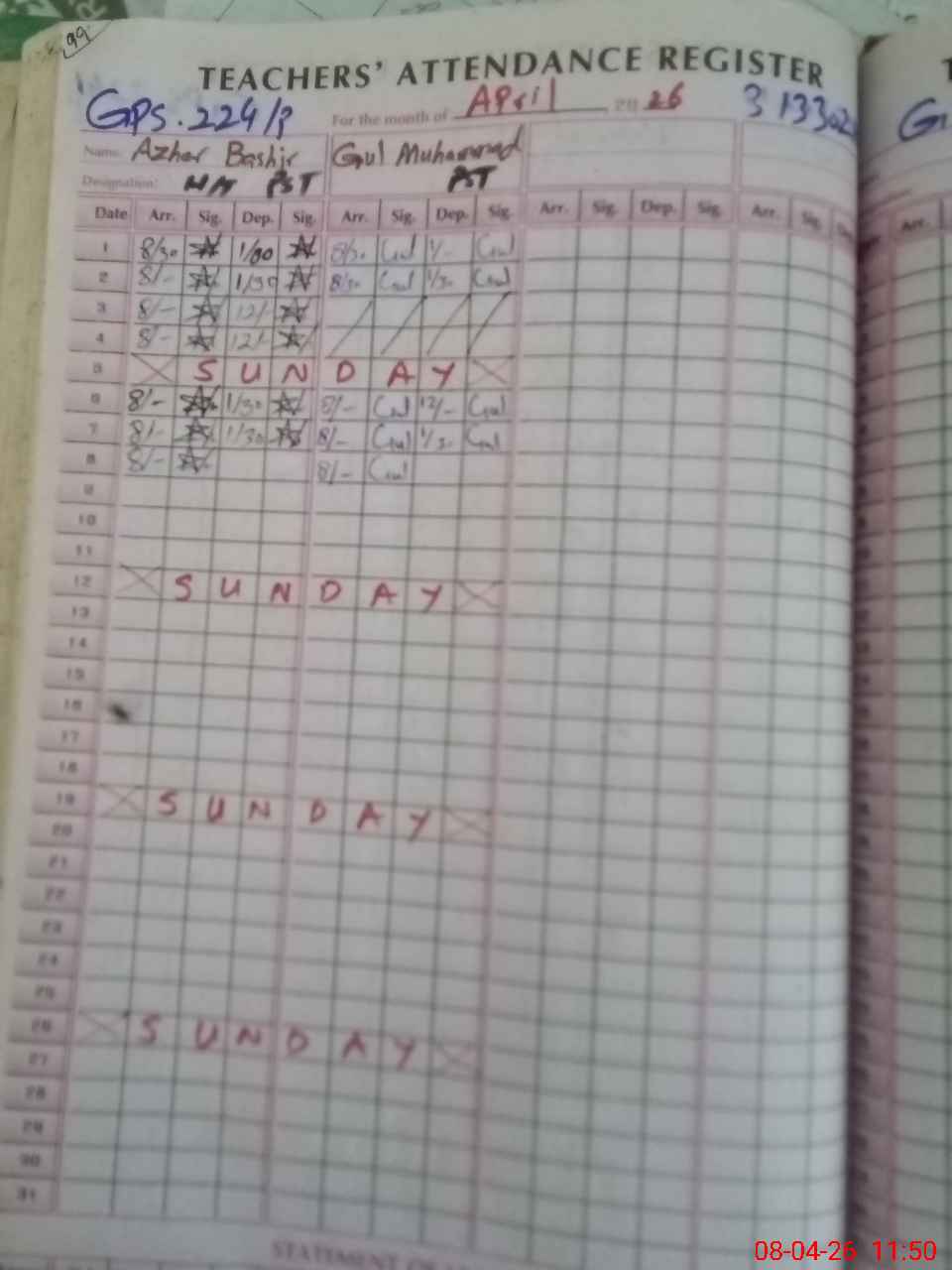 | Name: AZ**** BA**** Designation: (School Headmaster's/Headmistress's) PST/PTC/JV Phone/Cell Number: 03**** |