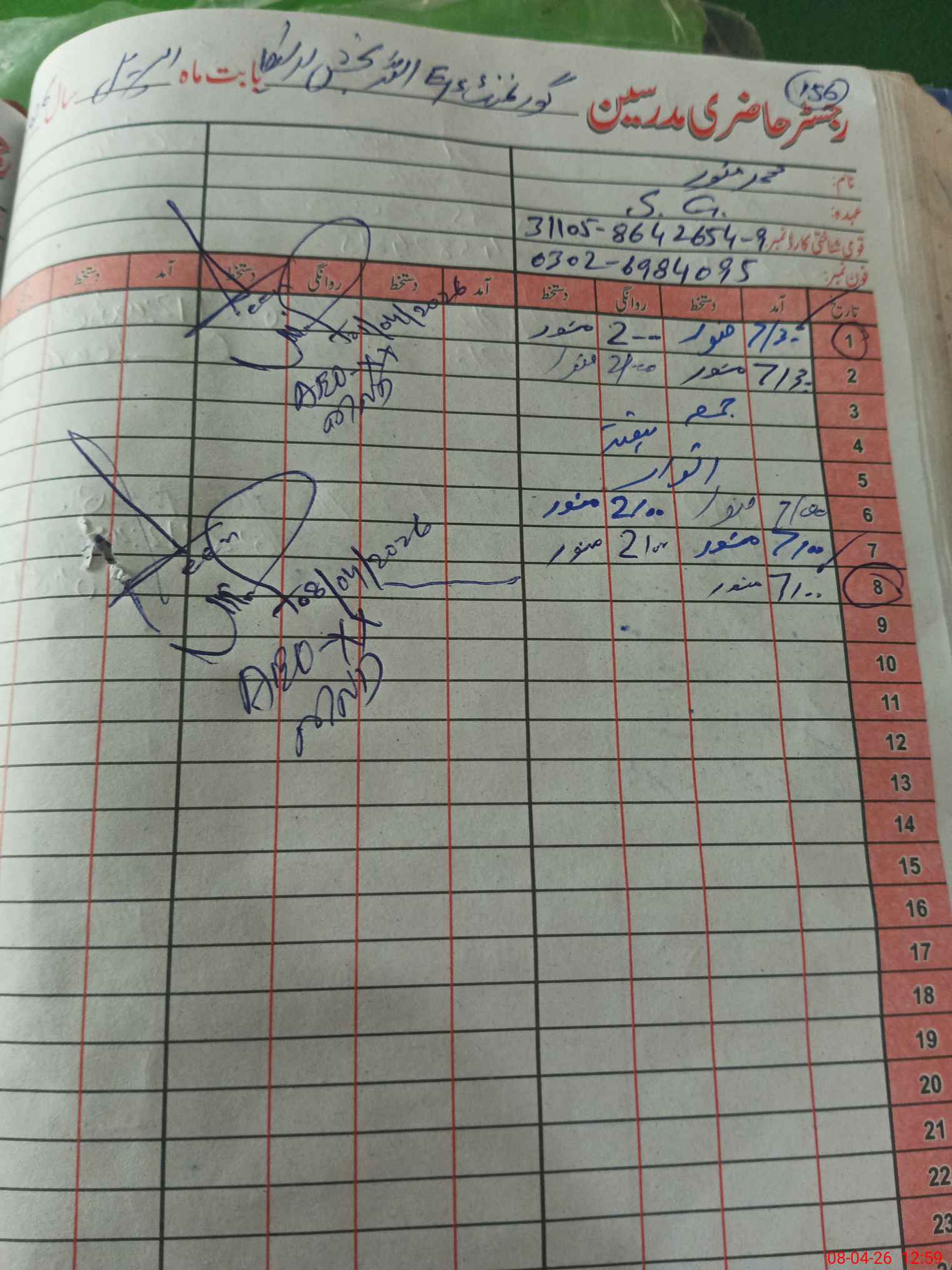 | Name: MU**** AM**** Designation: (School Headmaster's/Headmistress's) S.S.T.(SC) Phone/Cell Number: 03**** |