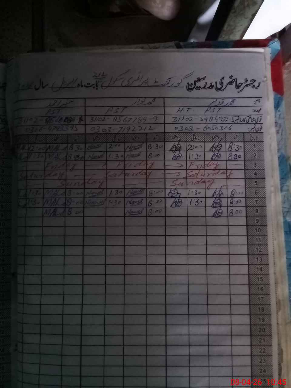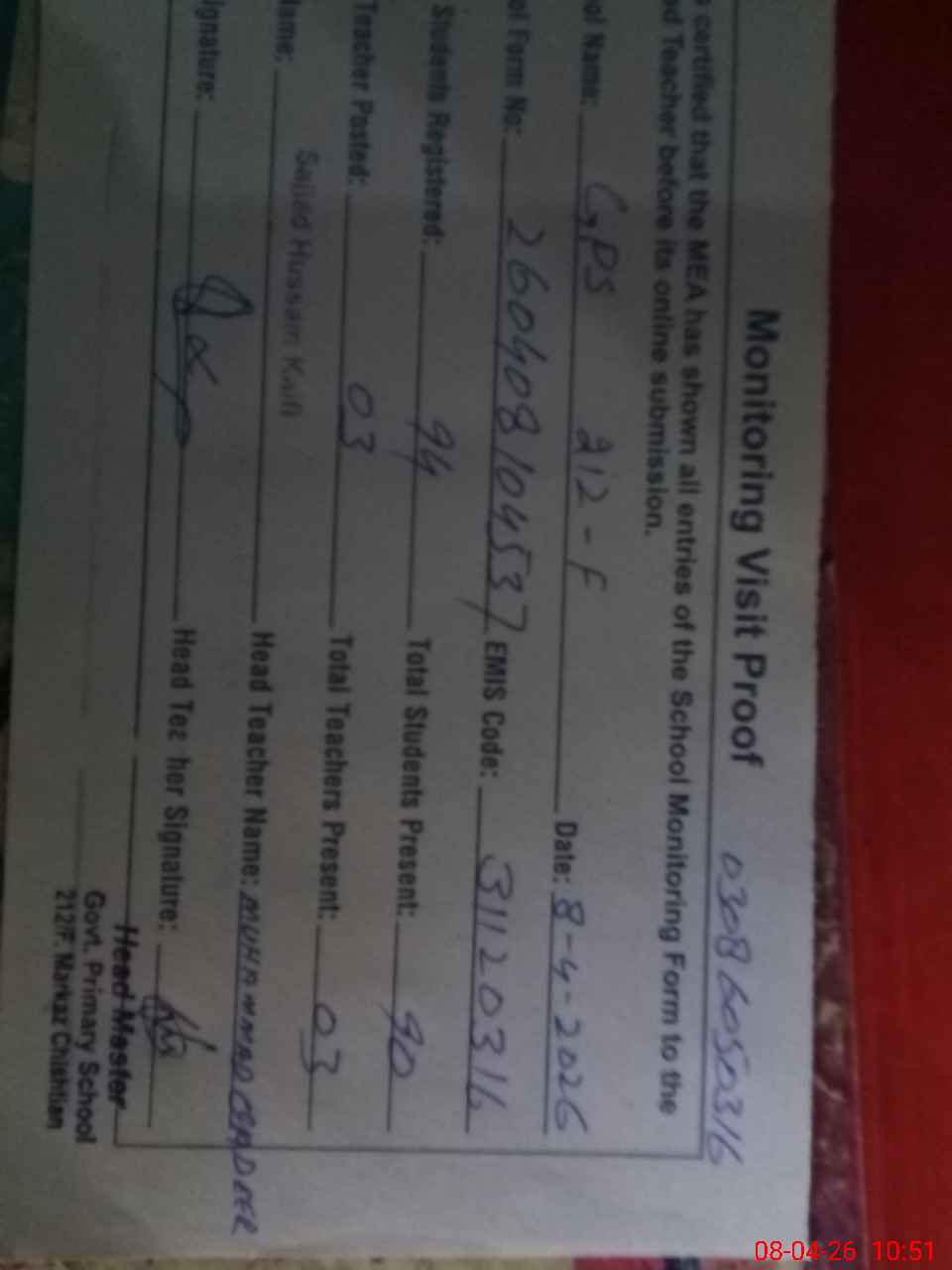 | Name: Mo**** Qa**** Designation: (School Headmaster's/Headmistress's) PST Phone/Cell Number: 03**** |