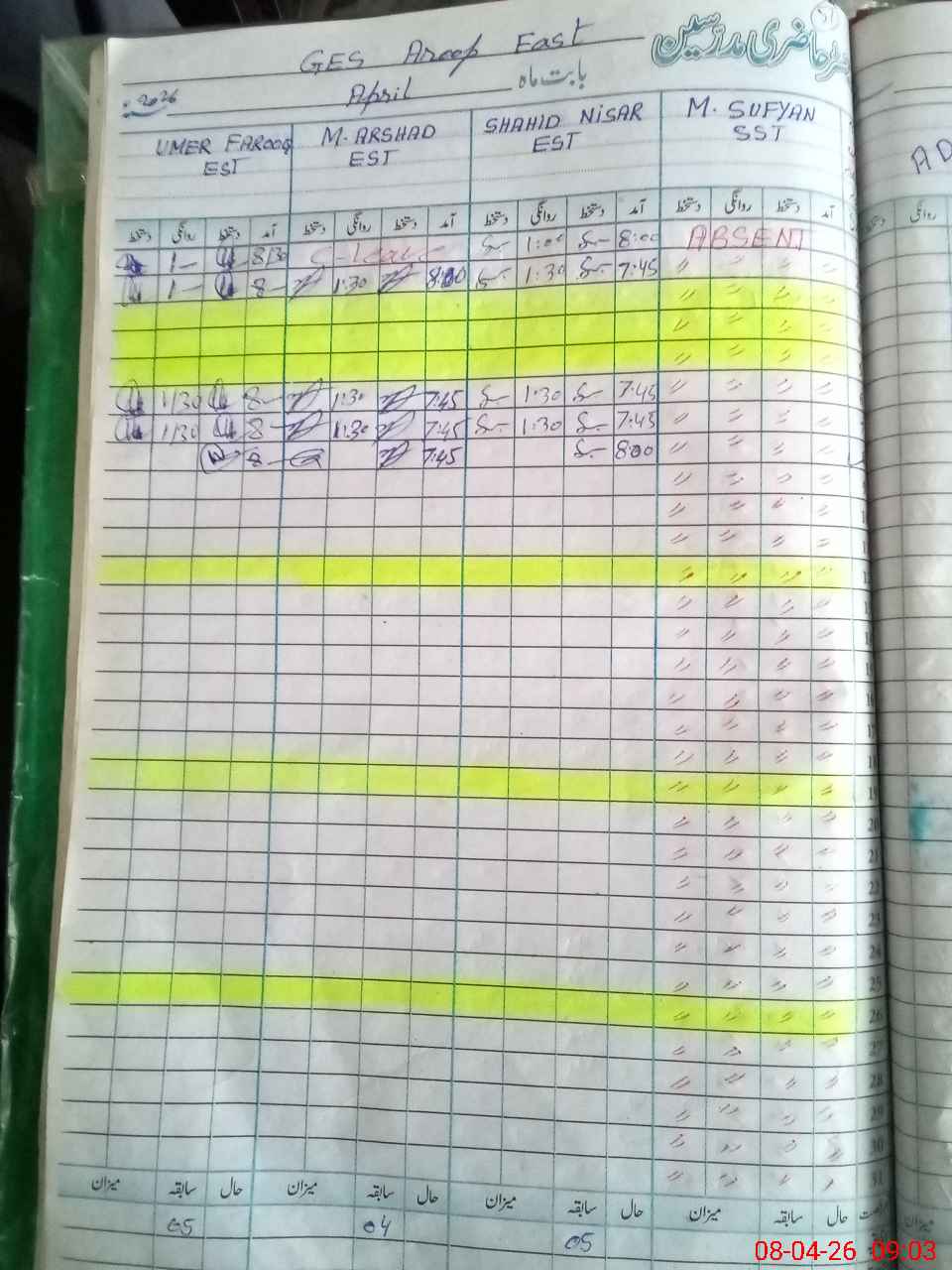 | 34**** | Al**** Ra**** Kh**** | ESE (Arts) | Contract | 0 | 0 | 0 | 0 | 0 | 0 | 0 | 0 | 0 | Exam Duty |