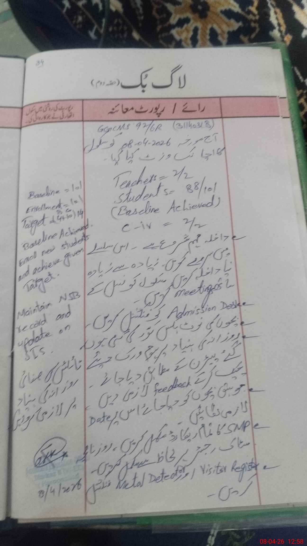 | Attendance Register | Head Teacher | MEA with School | Visit Proof |