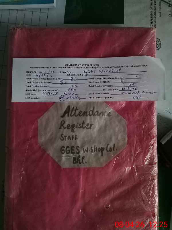 | EMIS Code: 38410500 | Name of School: GGES IRRIGATION WORKSHOP COLONY BHALWAL | |||