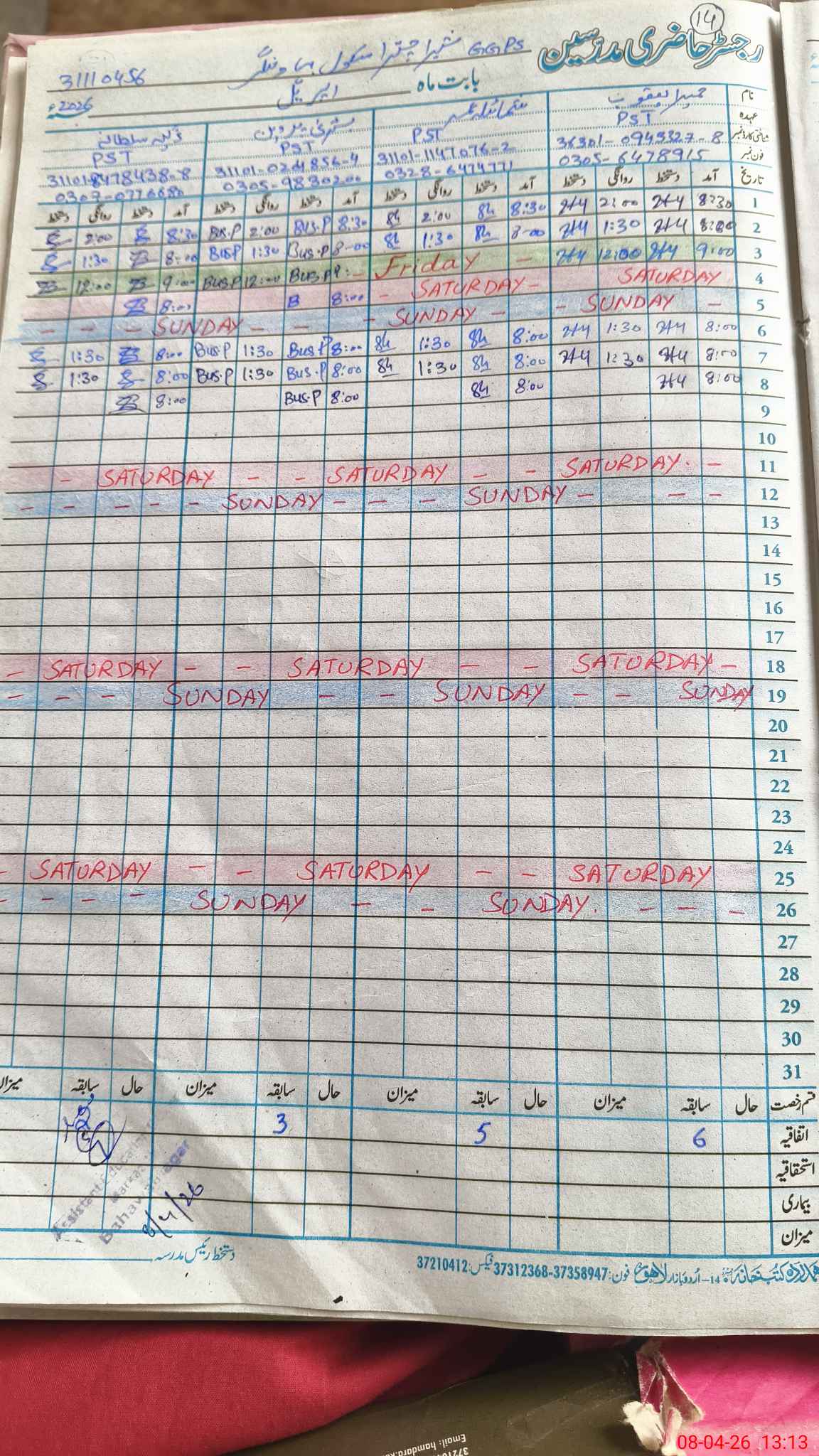 | Name: Hu**** Ya**** Designation: (School Headmaster's/Headmistress's) PST Phone/Cell Number: 03**** |