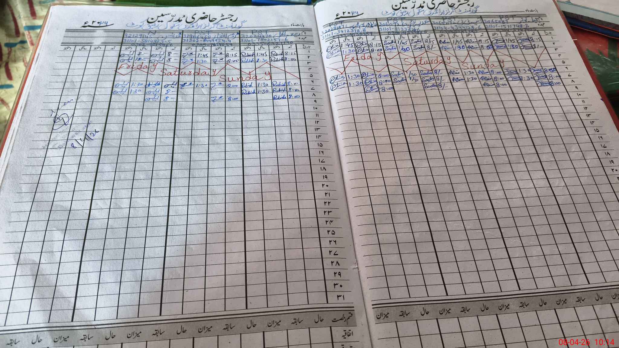 | CNIC | Full Name | Designation | R/C | Absence During Last Calender Month |