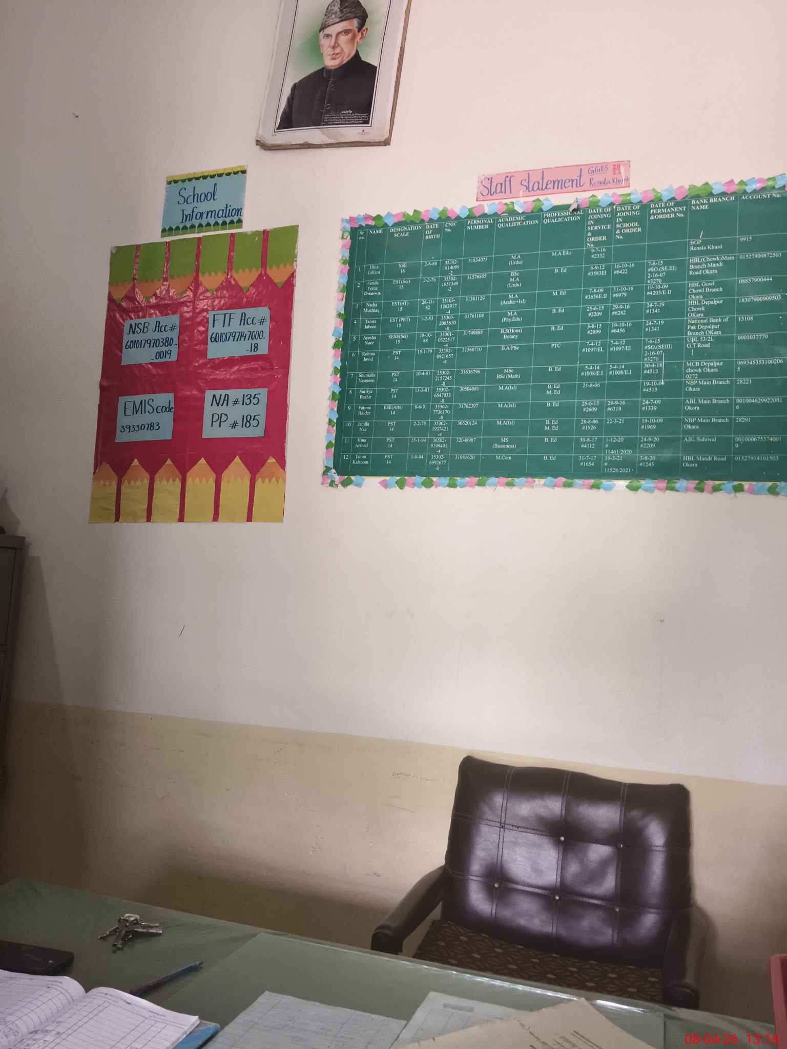 | Name: HI**** GI**** Designation: (School Headmaster's/Headmistress's) SSE Phone/Cell Number: 03**** |
