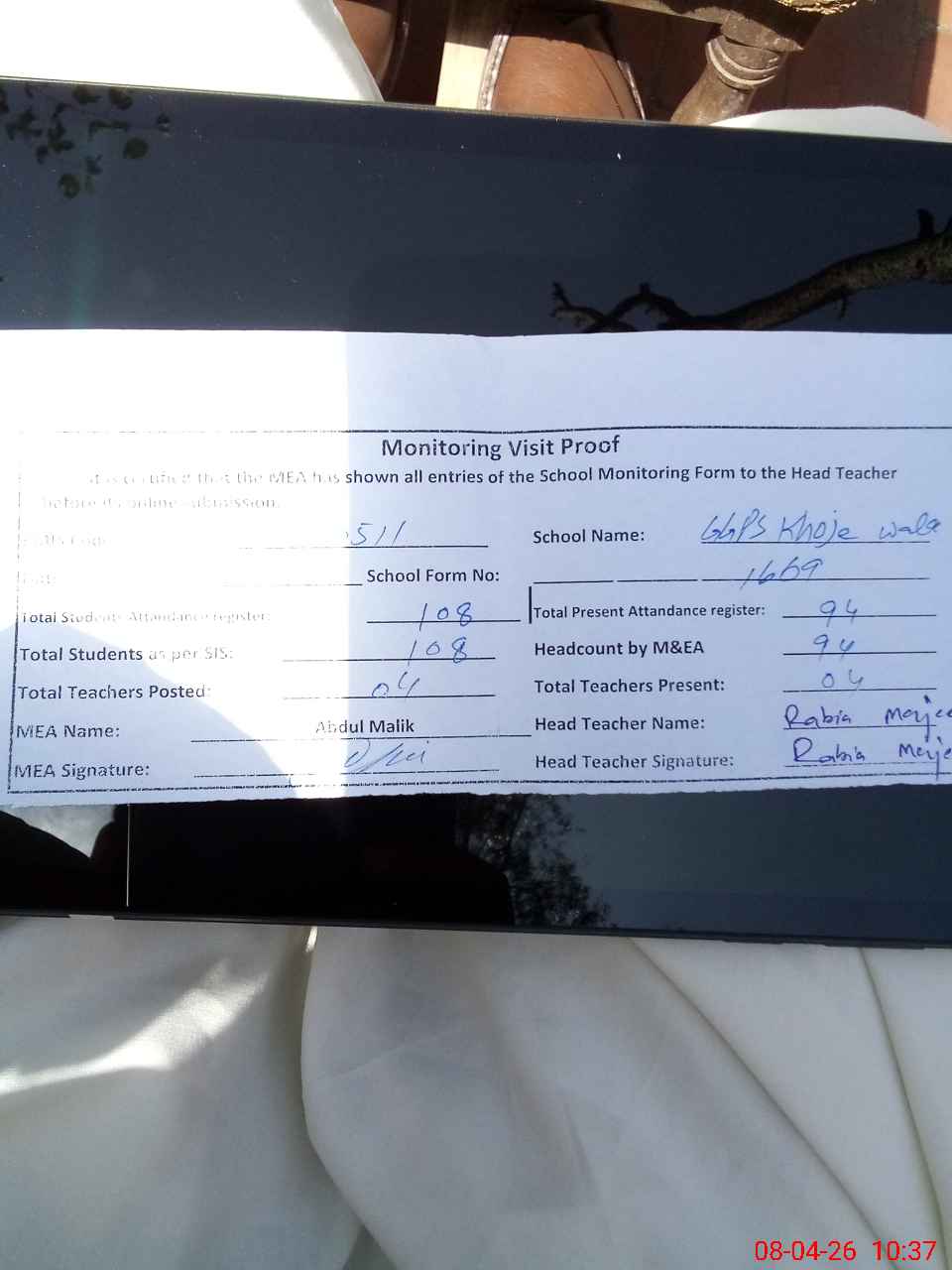 | EMIS Code: 32320511 | Name of School: GGPS KHOJAY WALA | |||
