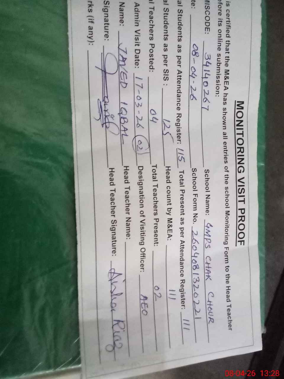| EMIS Code: 34140267 | Name of School: GMPS CHAK CHOUR | |||