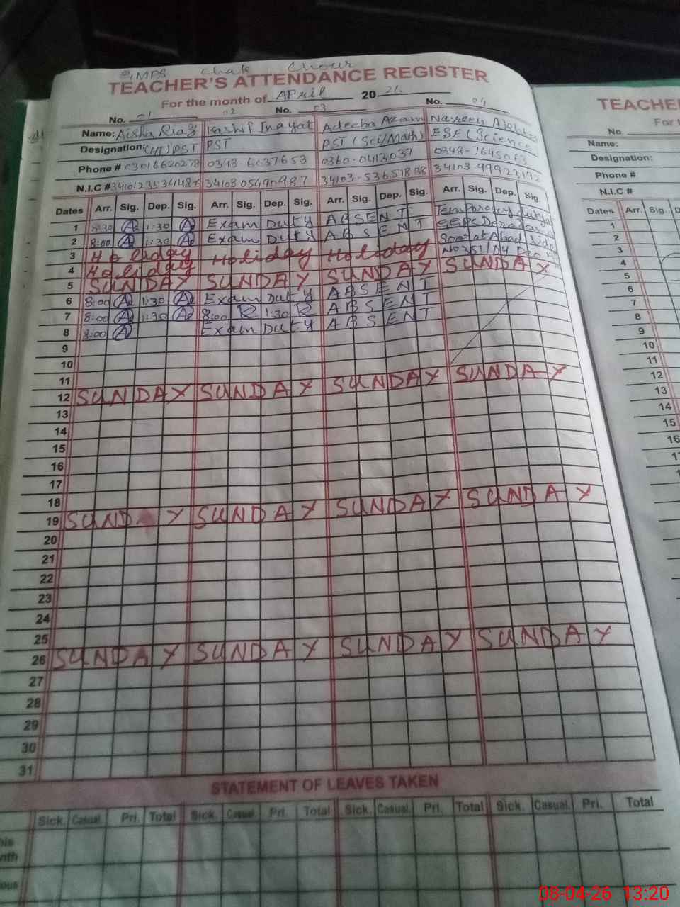 | 34**** | Ad**** Az**** | PST (Science-Math) | Regular | 0 | 0 | 31 | 0 | 0 | 0 | 0 | 0 | 0 | Absent (Un-Authorized) |