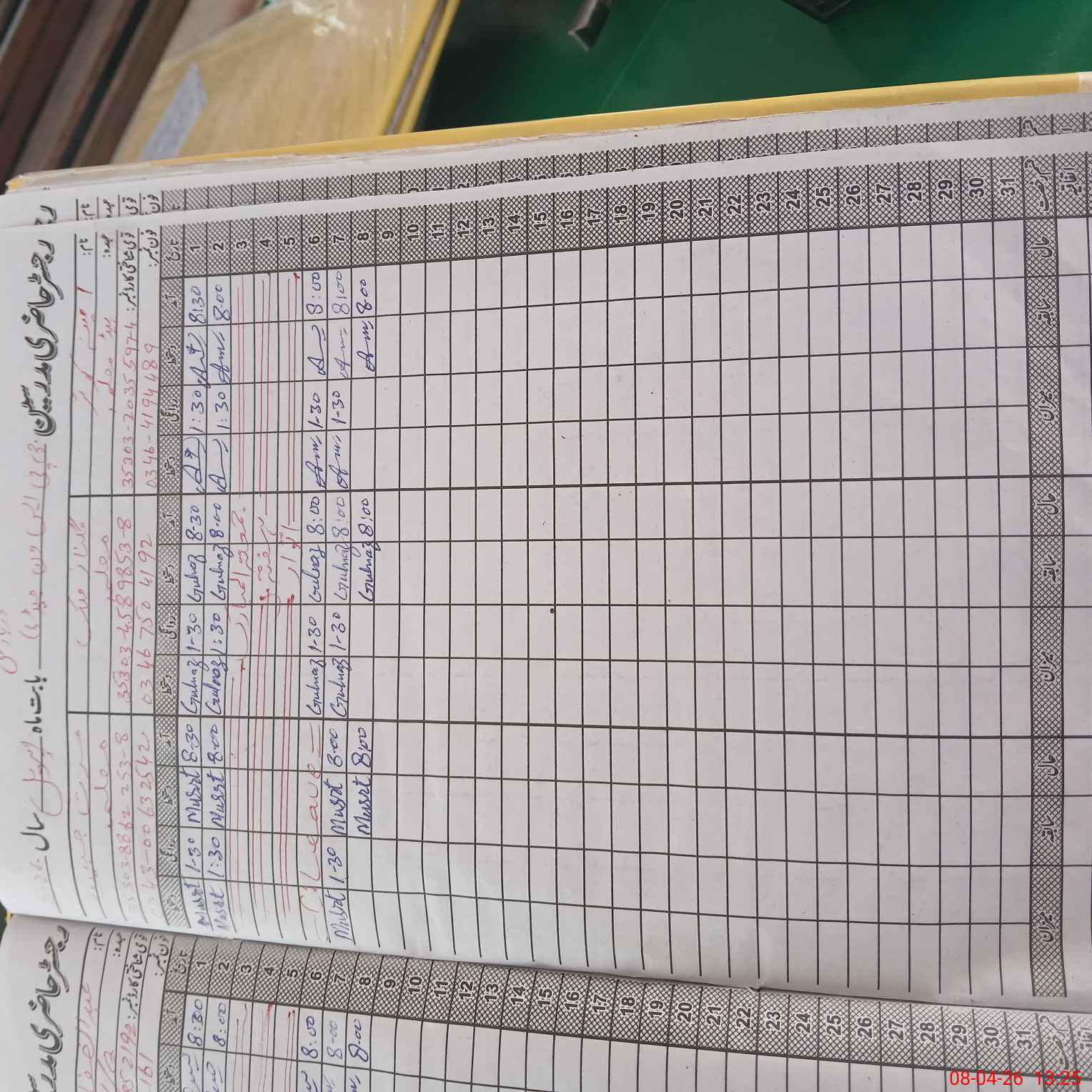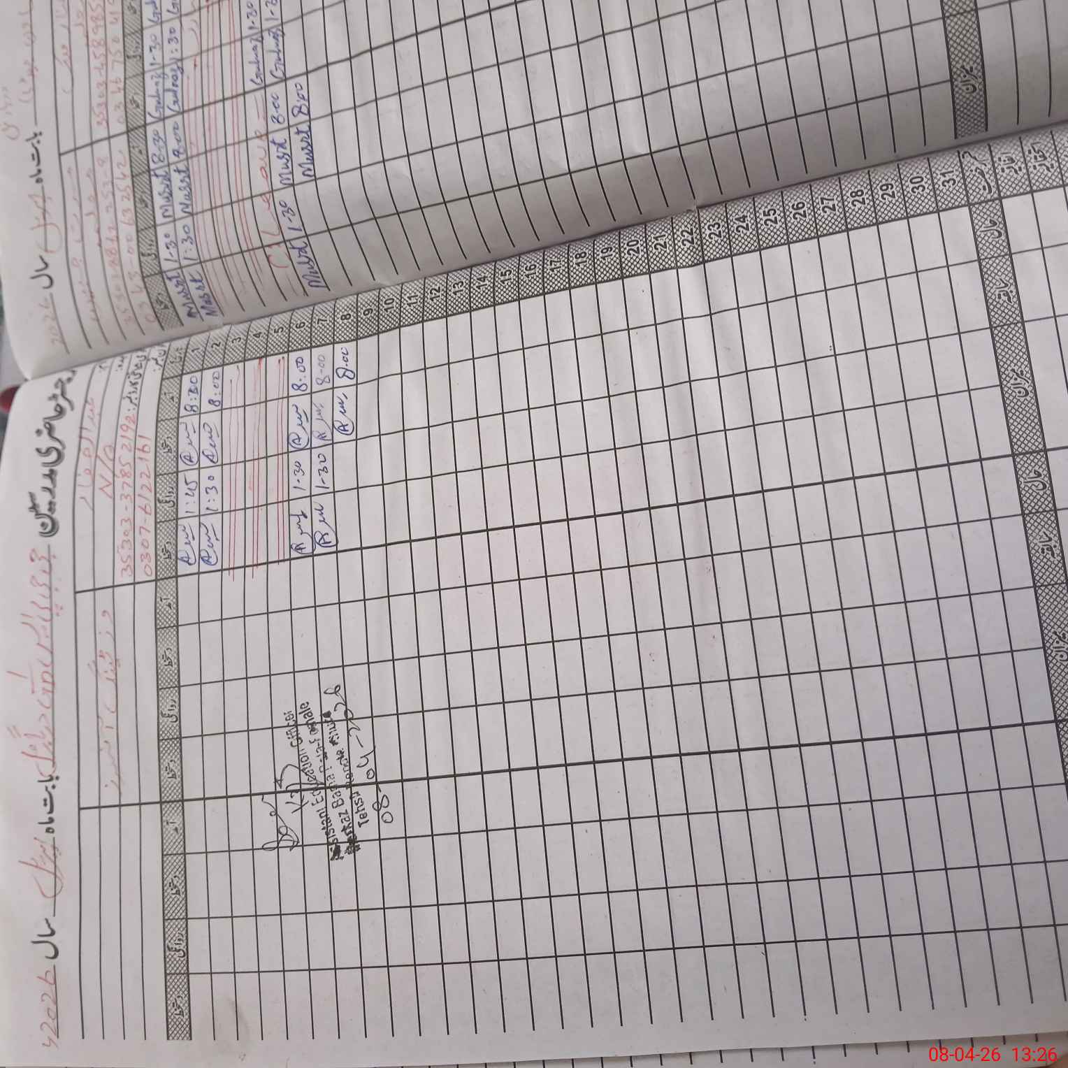 | CNIC | Full Name | Designation | R/C | Absence During Last Calender Month |