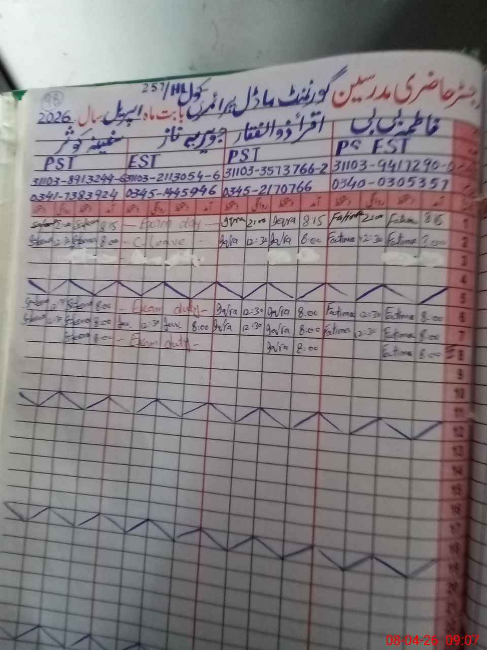 | 31**** | Ja**** Na**** | EST English | Regular | 0 | 0 | 0 | 0 | 0 | 0 | 0 | 0 | 0 | Exam Duty |