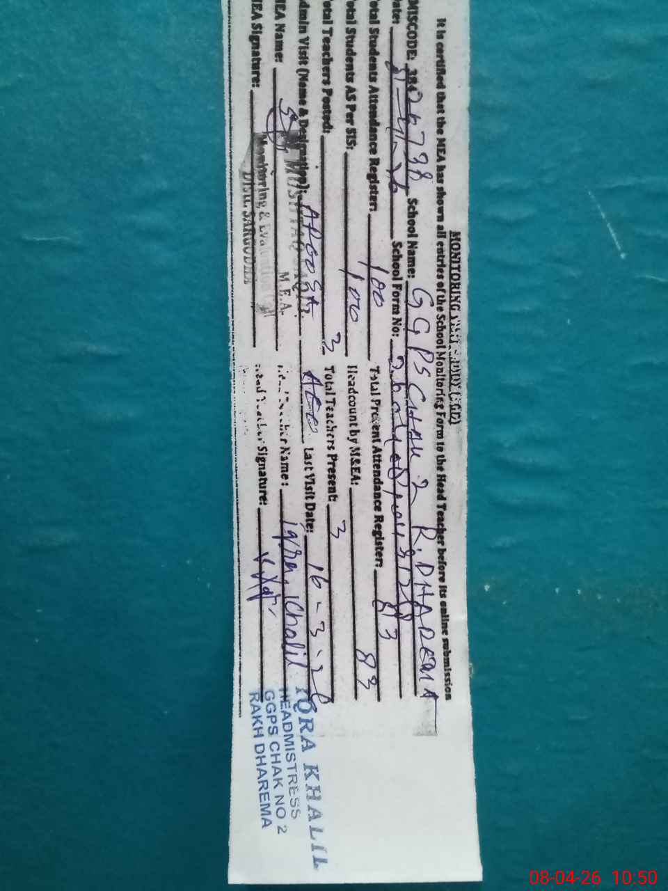 | EMIS Code: 38420738 | Name of School: GGPS CHAK NO.2 RAKH DHAREMA | |||