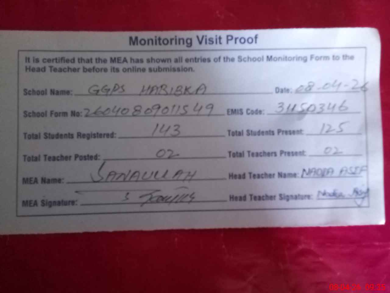 | EMIS Code: 31150346 | Name of School: GGPS HABIB KA | |||
