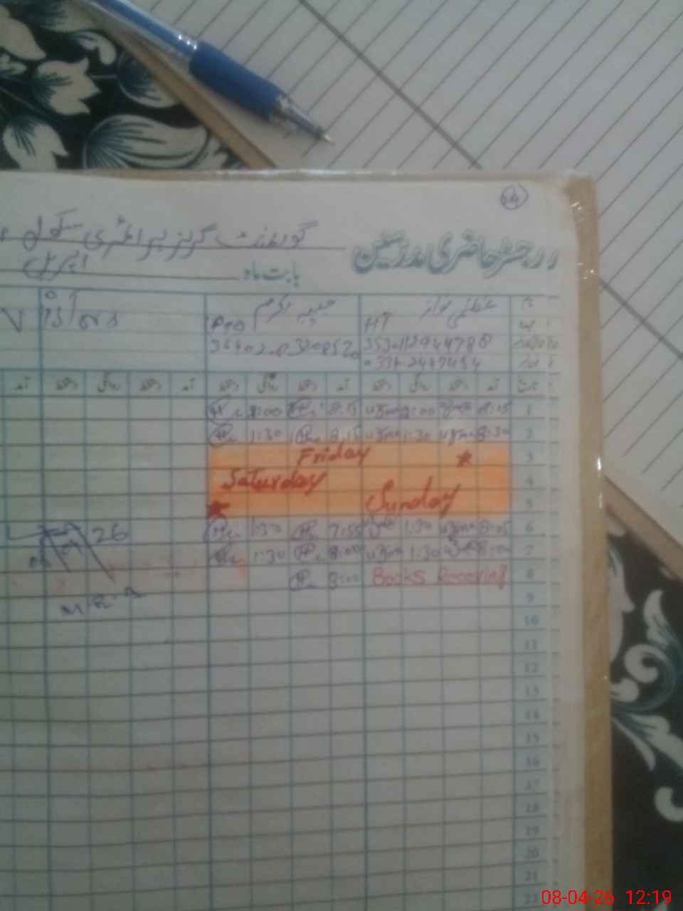 | Name: Uz**** Na**** Designation: (School Headmaster's/Headmistress's) PST Phone/Cell Number: 03**** |