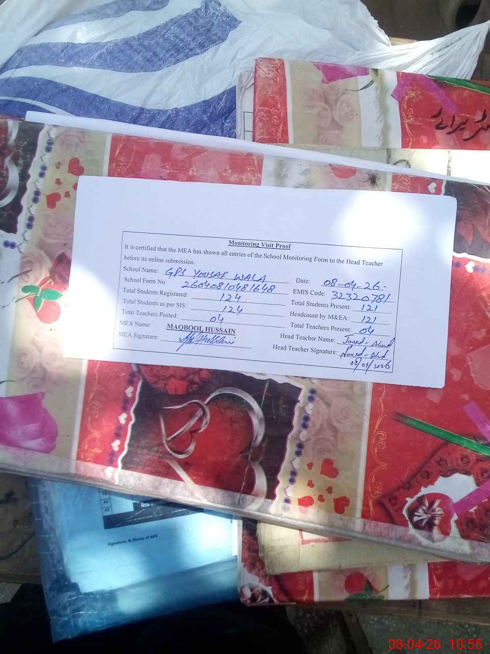 | EMIS Code: 32320781 | Name of School: GPS YOUSUF WALA | |||