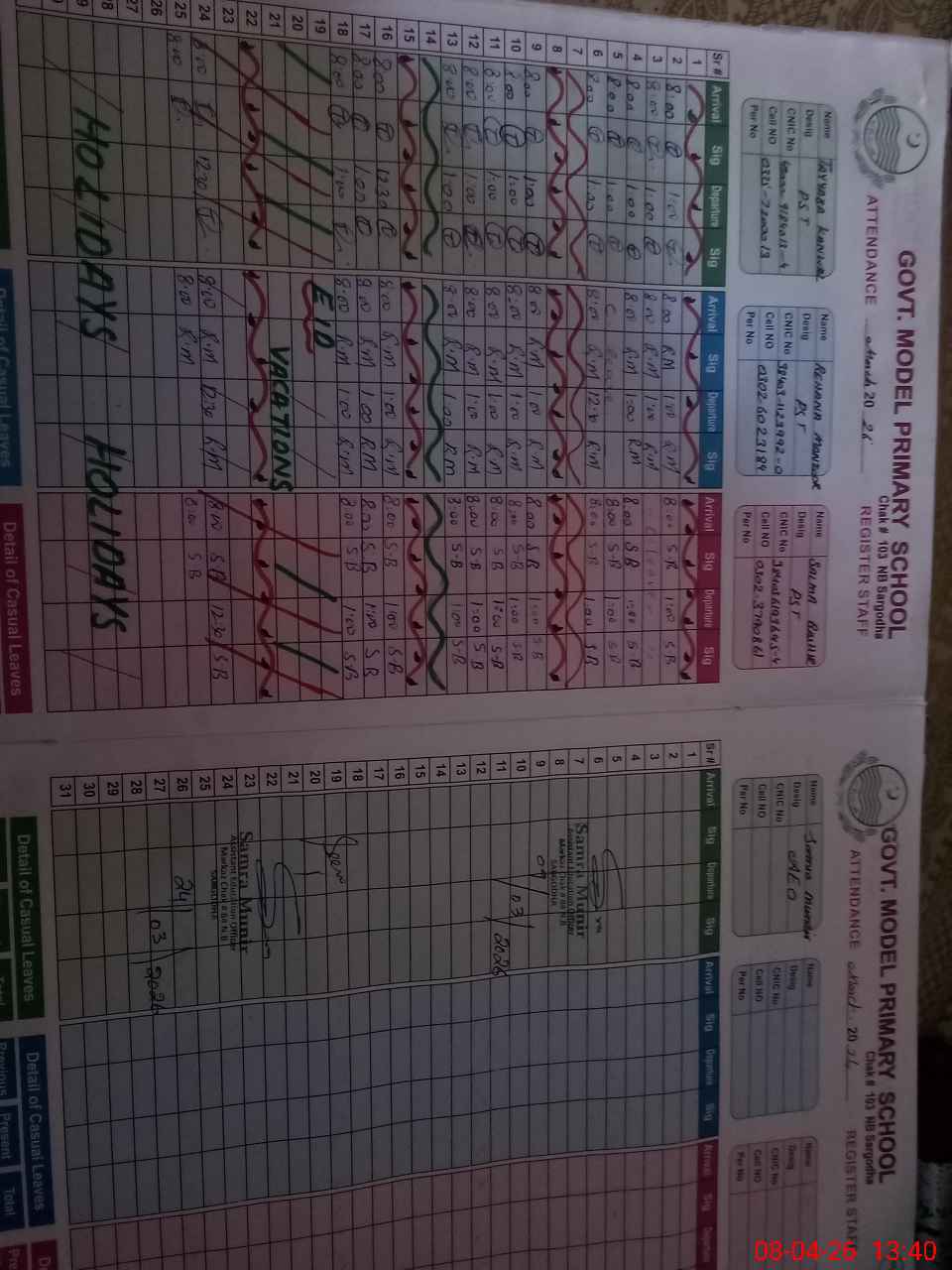 | CNIC | Full Name | Designation | R/C | Absence During Last Calender Month |