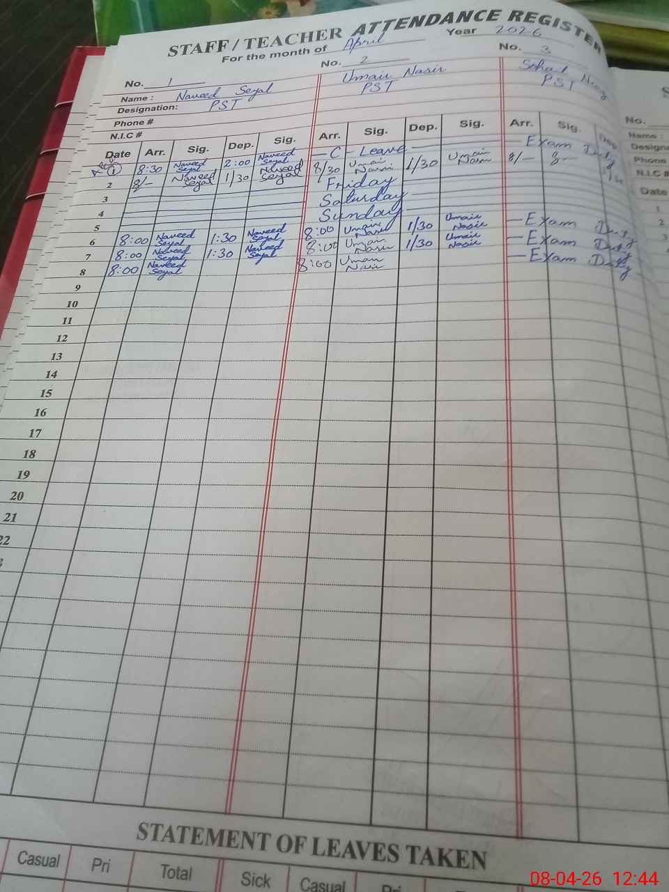 | 36**** | Mu**** So**** Ni**** | PST Arts | Regular | 0 | 0 | 0 | 0 | 0 | 0 | 0 | 0 | 0 | Exam Duty |