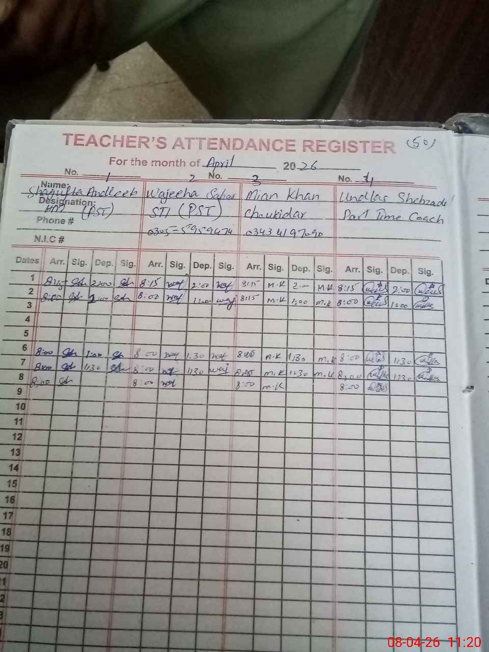 | Name: Sh**** An**** Designation: (School Headmaster's/Headmistress's) PST Phone/Cell Number: 03**** |