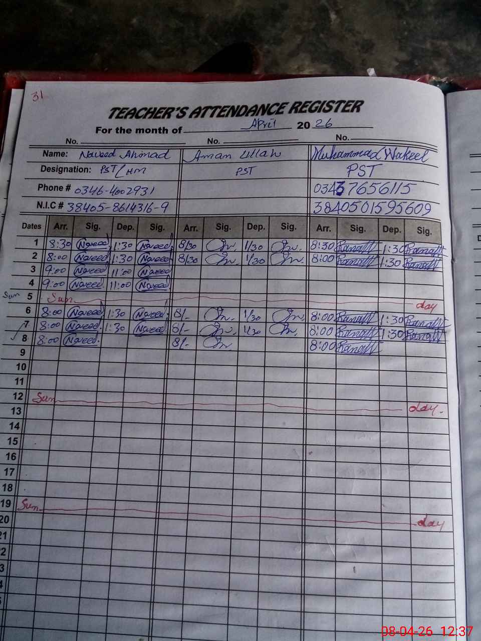 | Name: Na**** Ah**** Designation: (School Headmaster's/Headmistress's) PST Phone/Cell Number: 03**** |