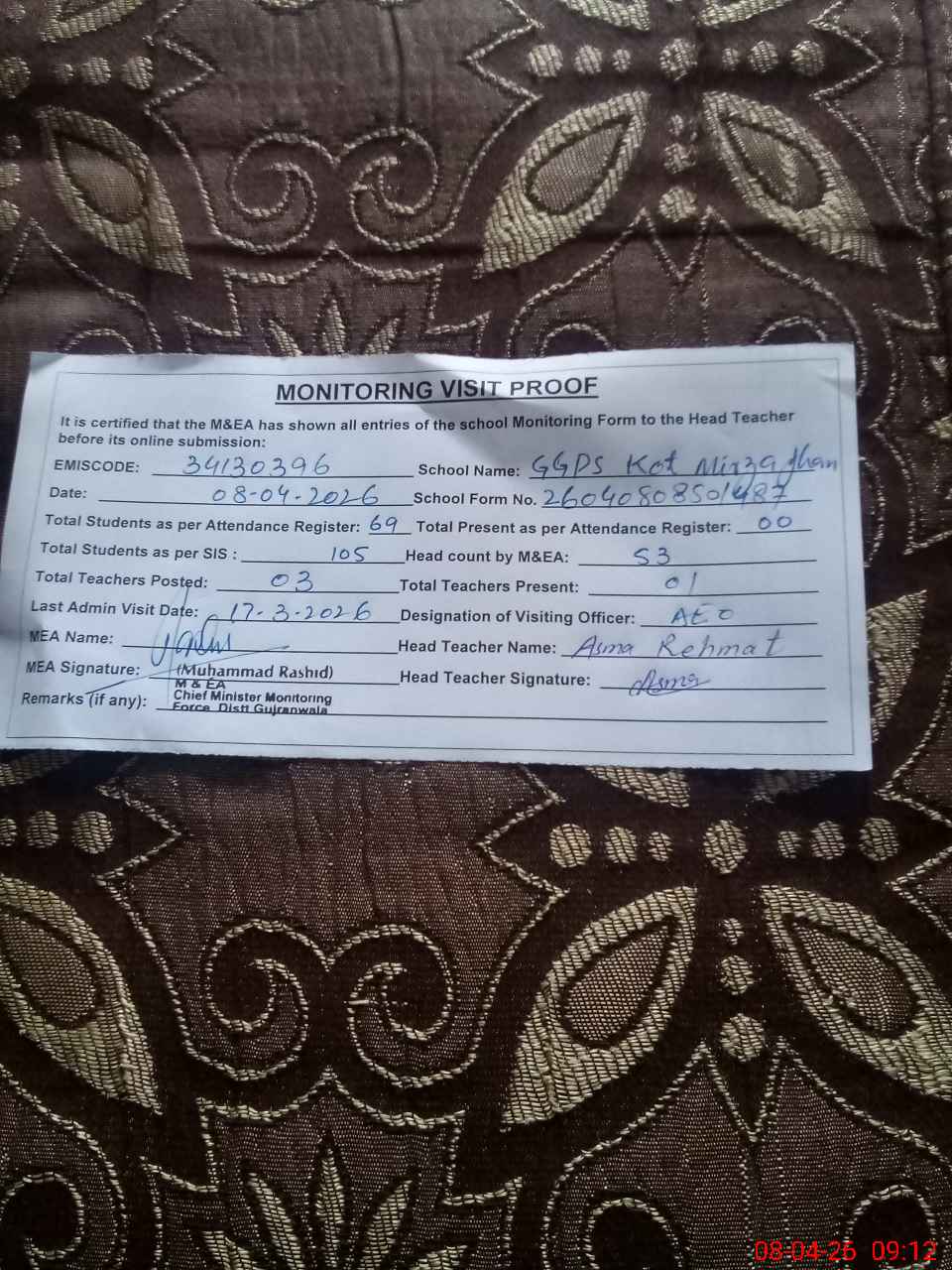 | EMIS Code: 34130396 | Name of School: GGPS KOT MIRZA JHAN | |||