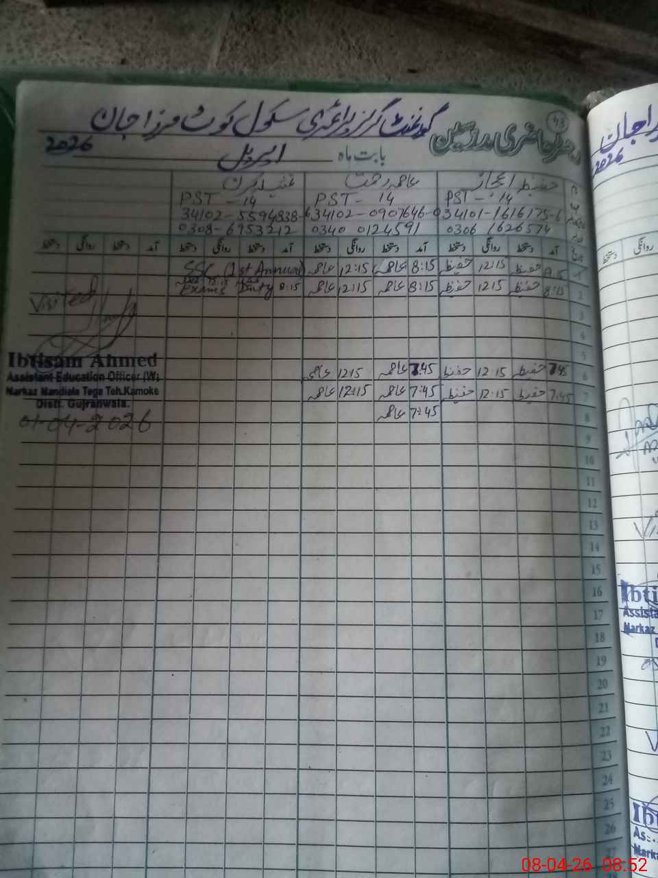 | Name: HA**** IJ**** Designation: (School Headmaster's/Headmistress's) PST/PTC/JV Phone/Cell Number: 03**** |