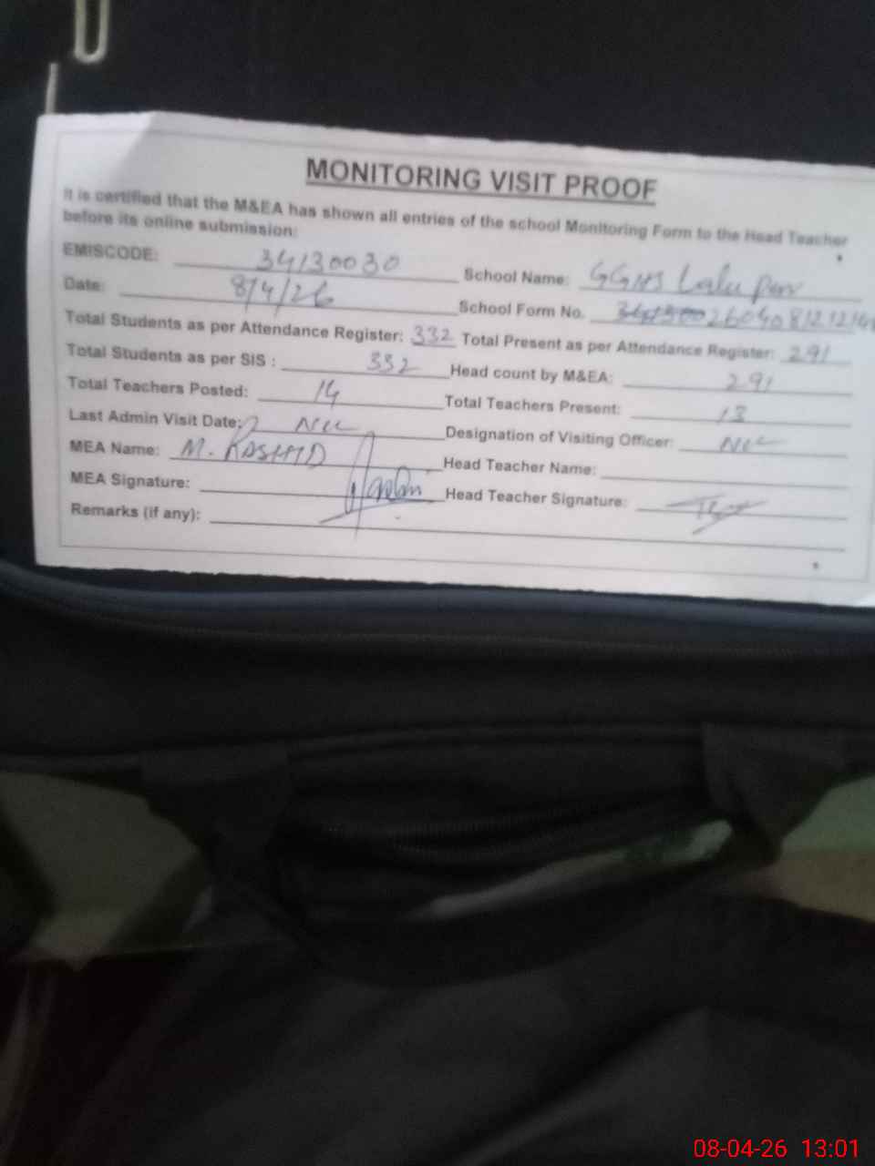 | EMIS Code: 34130030 | Name of School: GGHS LALU PUR | |||