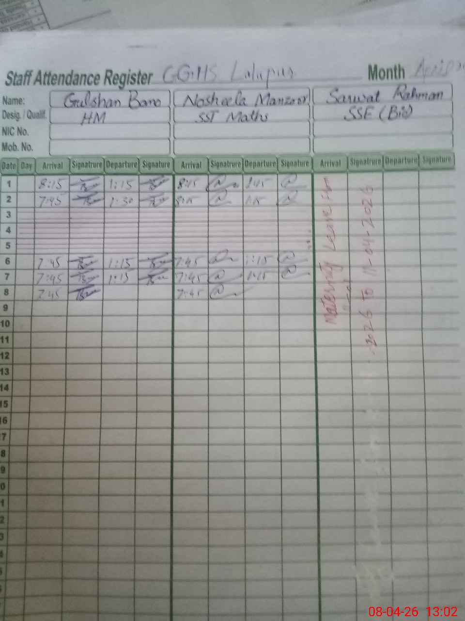 | 00**** | An**** Ma**** | SW | 0 | 0 | 0 | 0 | 0 | 0 | 0 | 0 | 0 | Absent (Un-Authorized) | |