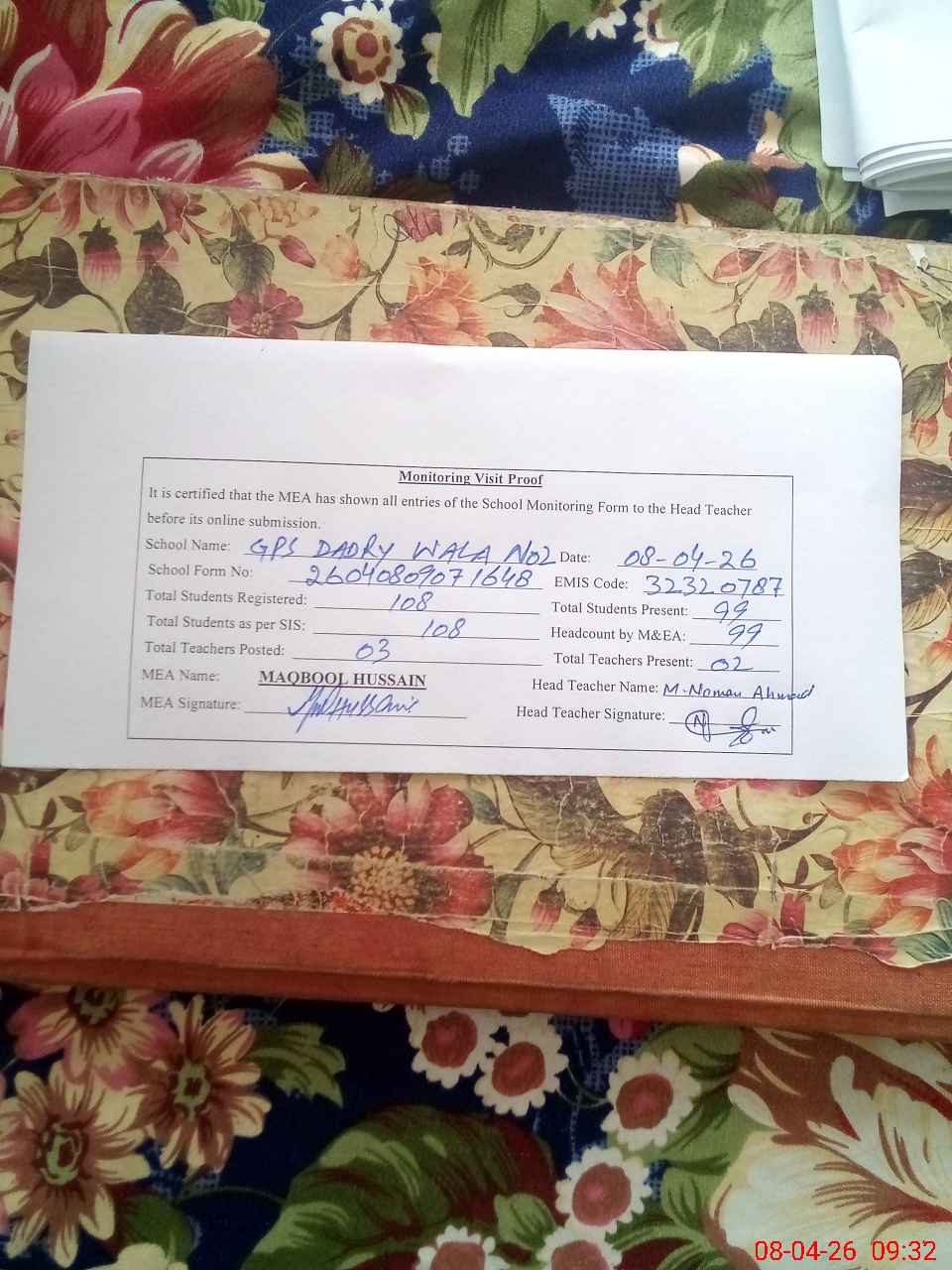 | EMIS Code: 32320787 | Name of School: GPS DADRAY WALA NO. 2 | |||
