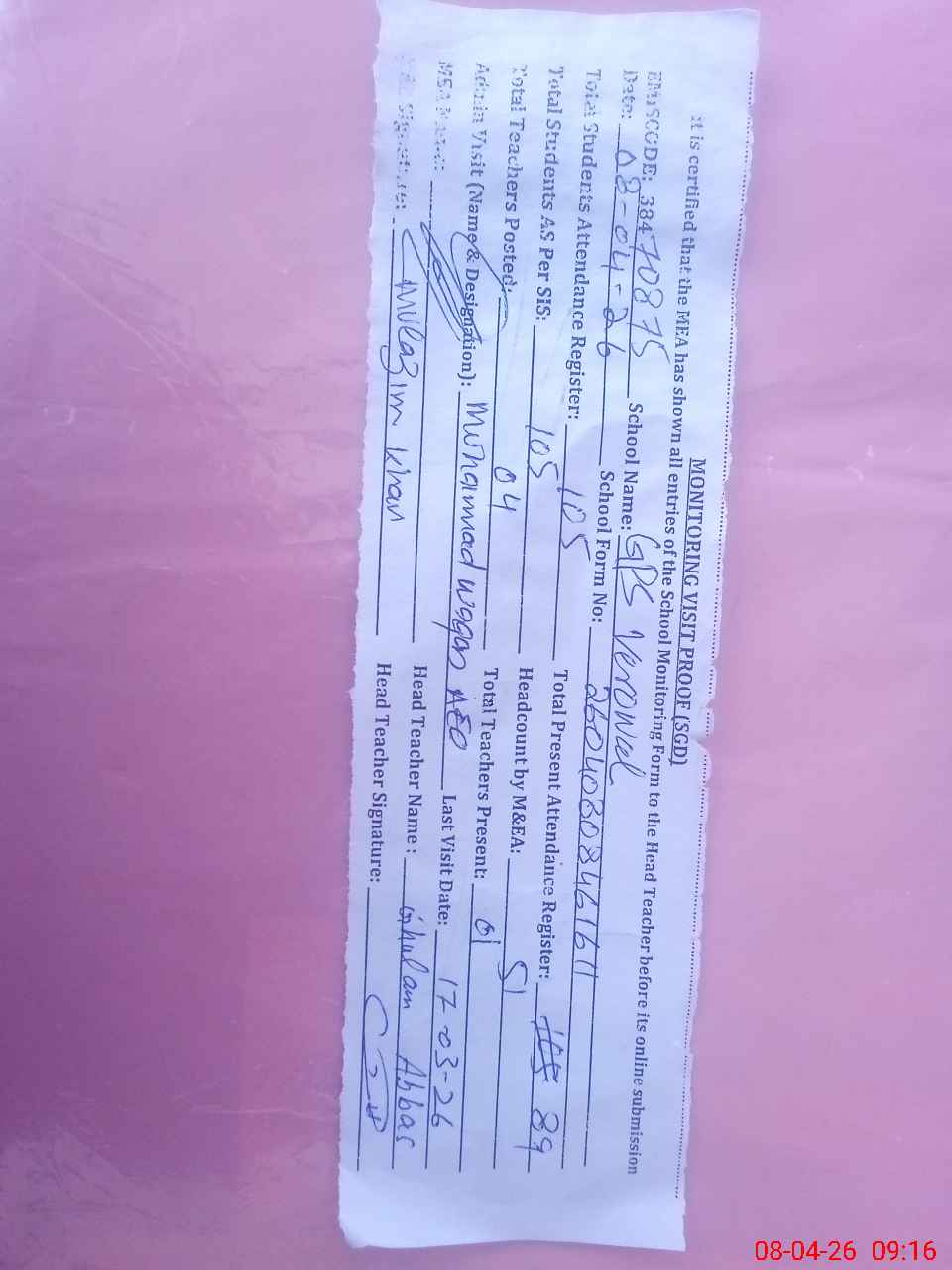 | EMIS Code: 38470875 | Name of School: GPS VEROWAL | |||