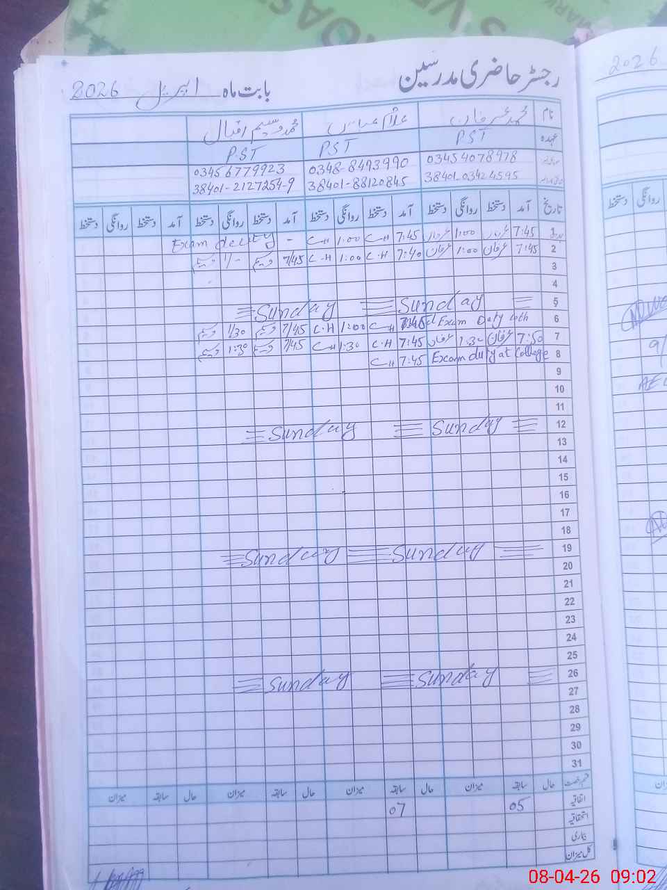 | 38**** | Mu**** Ha**** Ul**** | PST Science/Maths | Regular | 0 | 0 | 0 | 0 | 0 | 0 | 0 | 0 | 0 | Absent (Un-Authorized) |