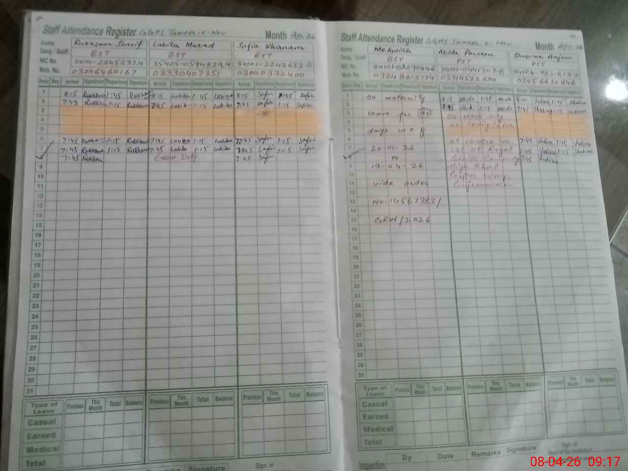 | 33**** | Na**** Ra**** | PST Science/Maths | Regular | 0 | 0 | 0 | 0 | 0 | 0 | 0 | 0 | 0 | Maternity |