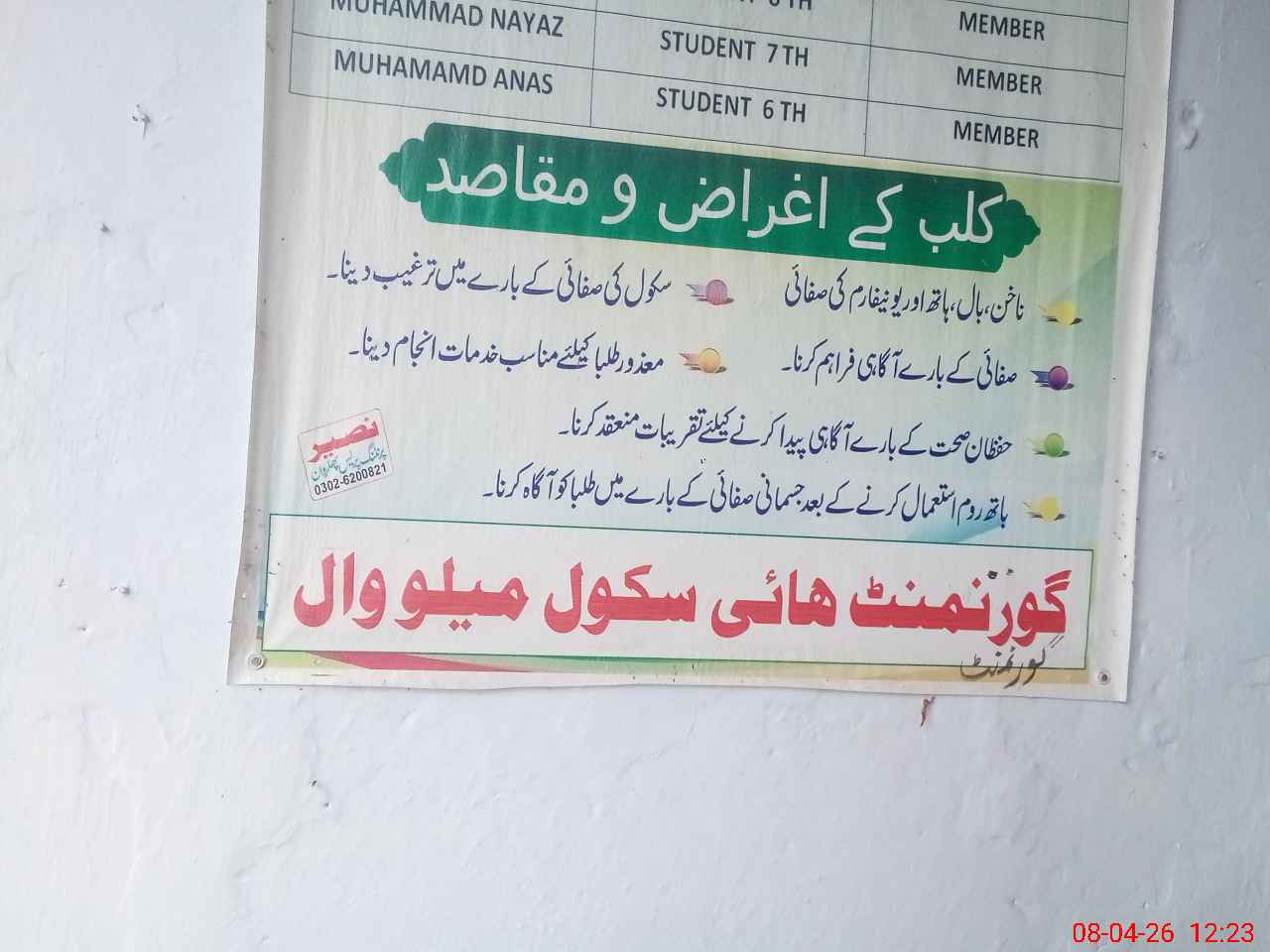 | Name: Sy**** Mu**** Za**** Designation: (School Headmaster's/Headmistress's) Inch HEADMASTER Phone/Cell Number: 03**** |