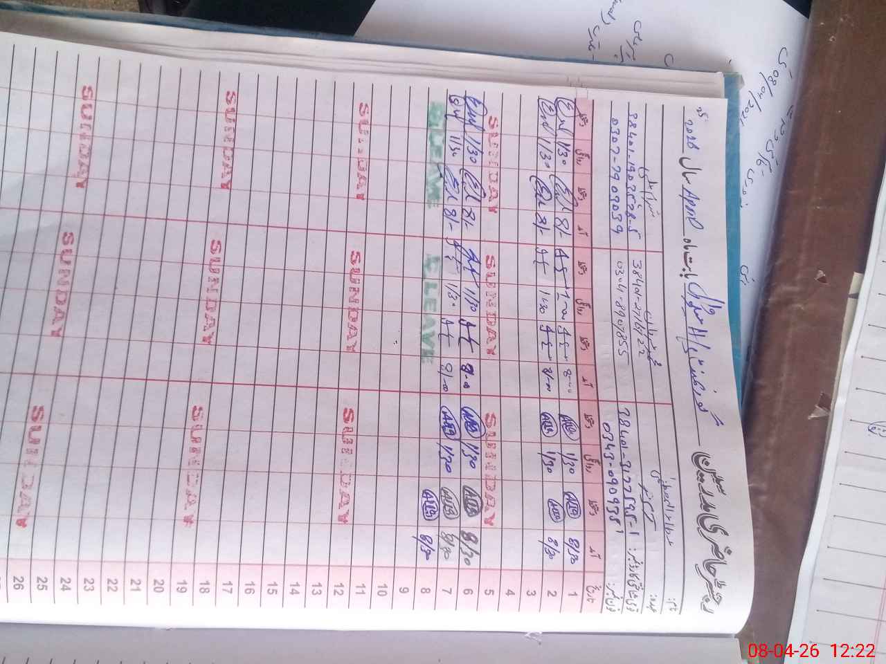 | Leave | Duty | Absent | Maternity | Medical | Ex- Pak |