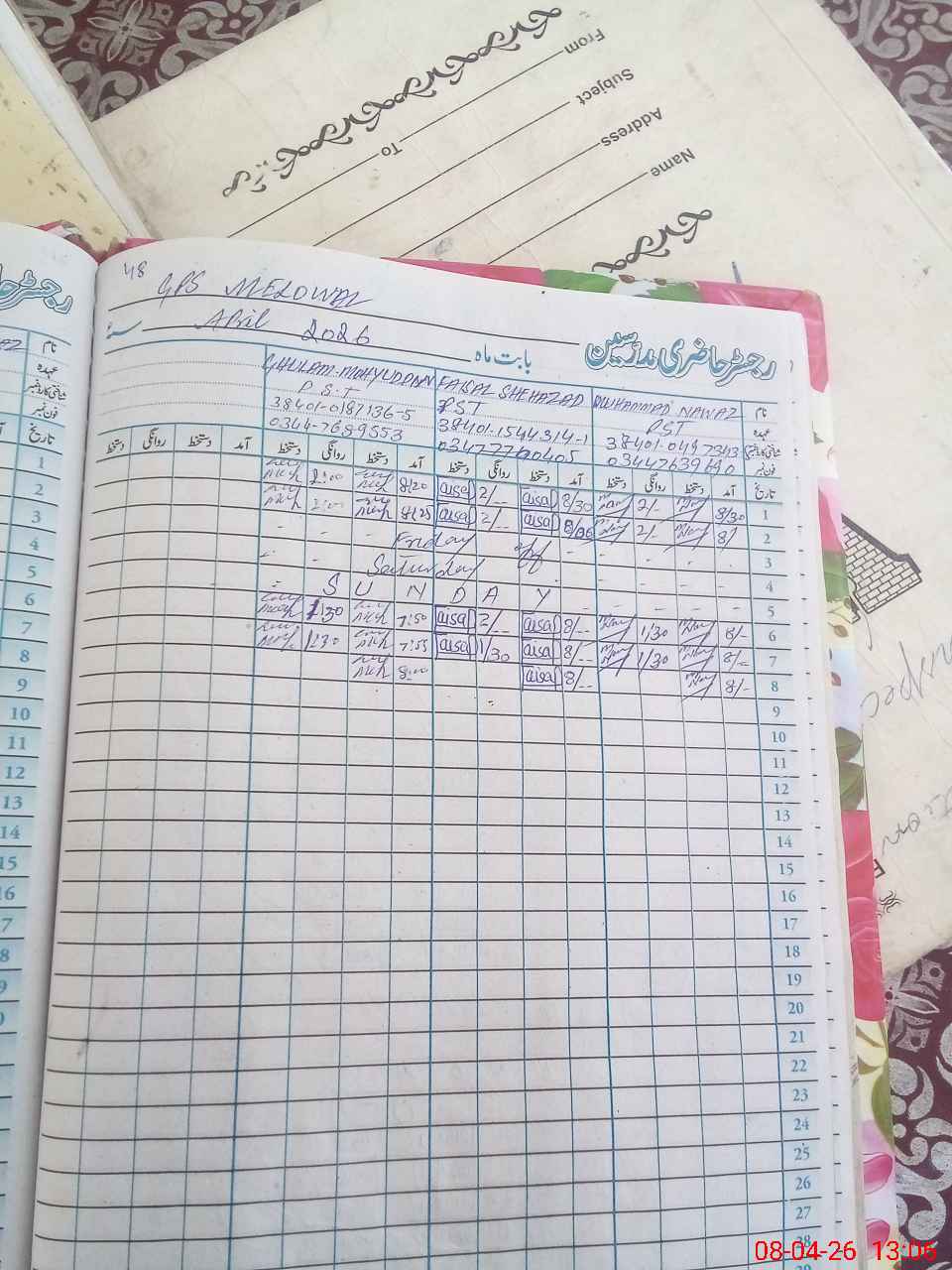 | Name: MU**** NA**** Designation: (School Headmaster's/Headmistress's) PST Phone/Cell Number: 03**** |