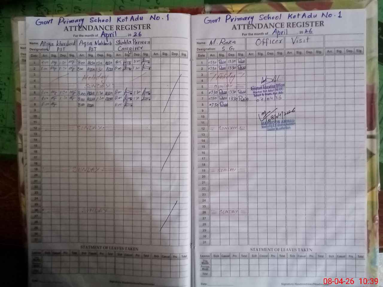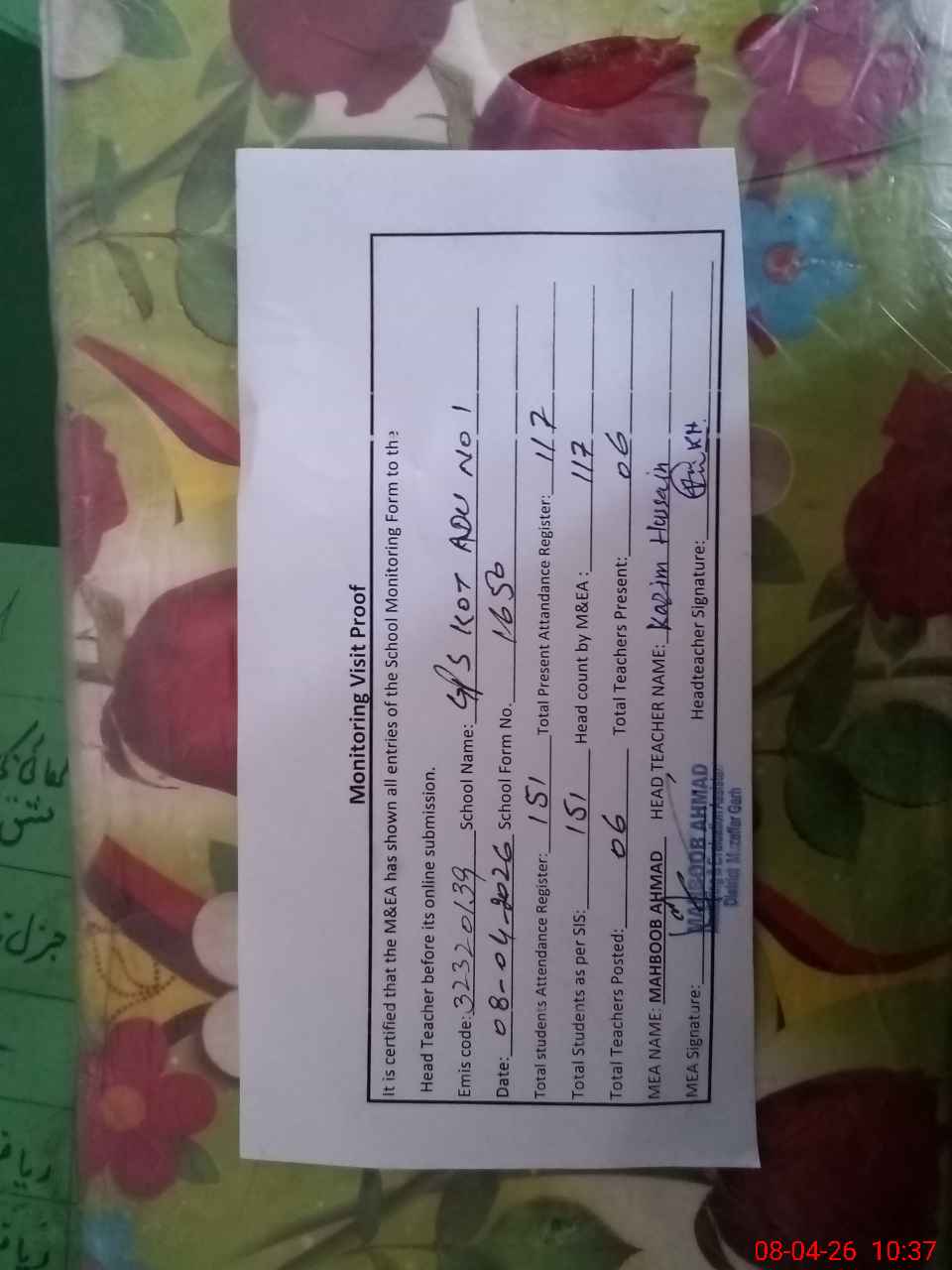 | EMIS Code: 32320139 | Name of School: GPS KOT ADU NO. 1 | |||