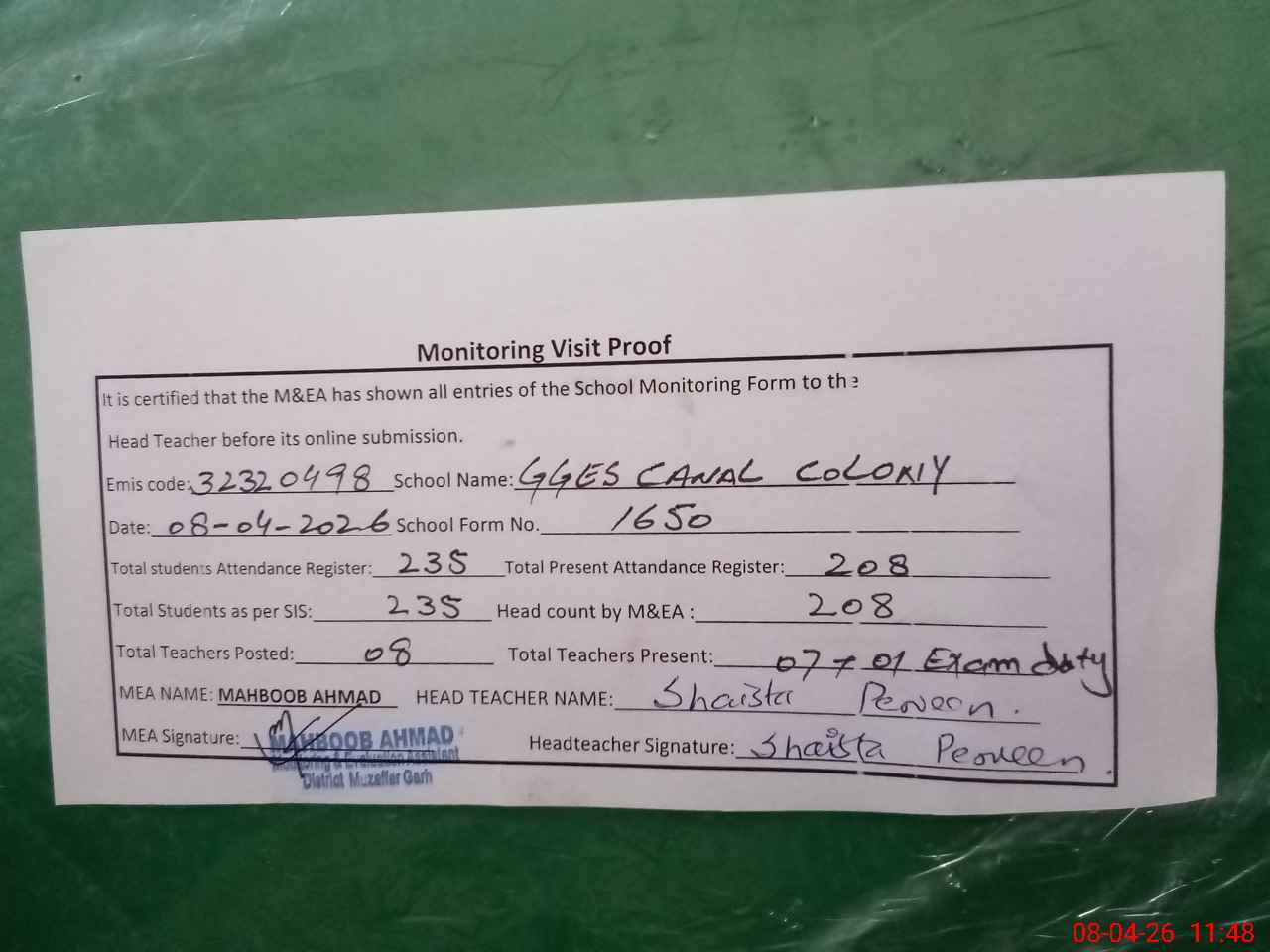 | EMIS Code: 32320498 | Name of School: GGES CANAL COLONY | |||
