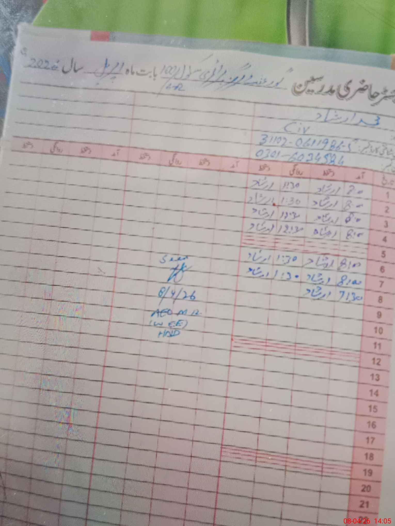 | Name: Ri**** As**** Designation: (School Headmaster's/Headmistress's) EST Phone/Cell Number: 03**** |