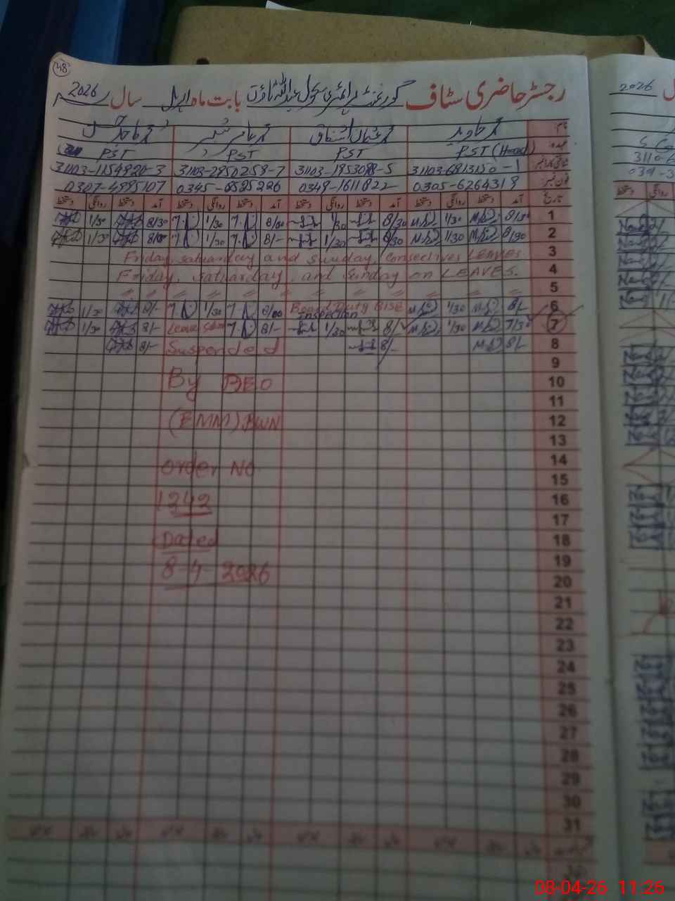 | Name: Mu**** Ja**** Designation: (School Headmaster's/Headmistress's) PST Phone/Cell Number: 03**** |