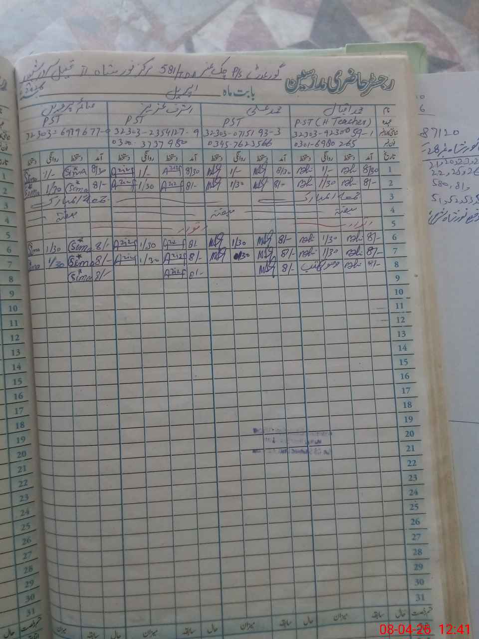 | Name: M.**** Designation: (School Headmaster's/Headmistress's) PST Phone/Cell Number: 03**** |