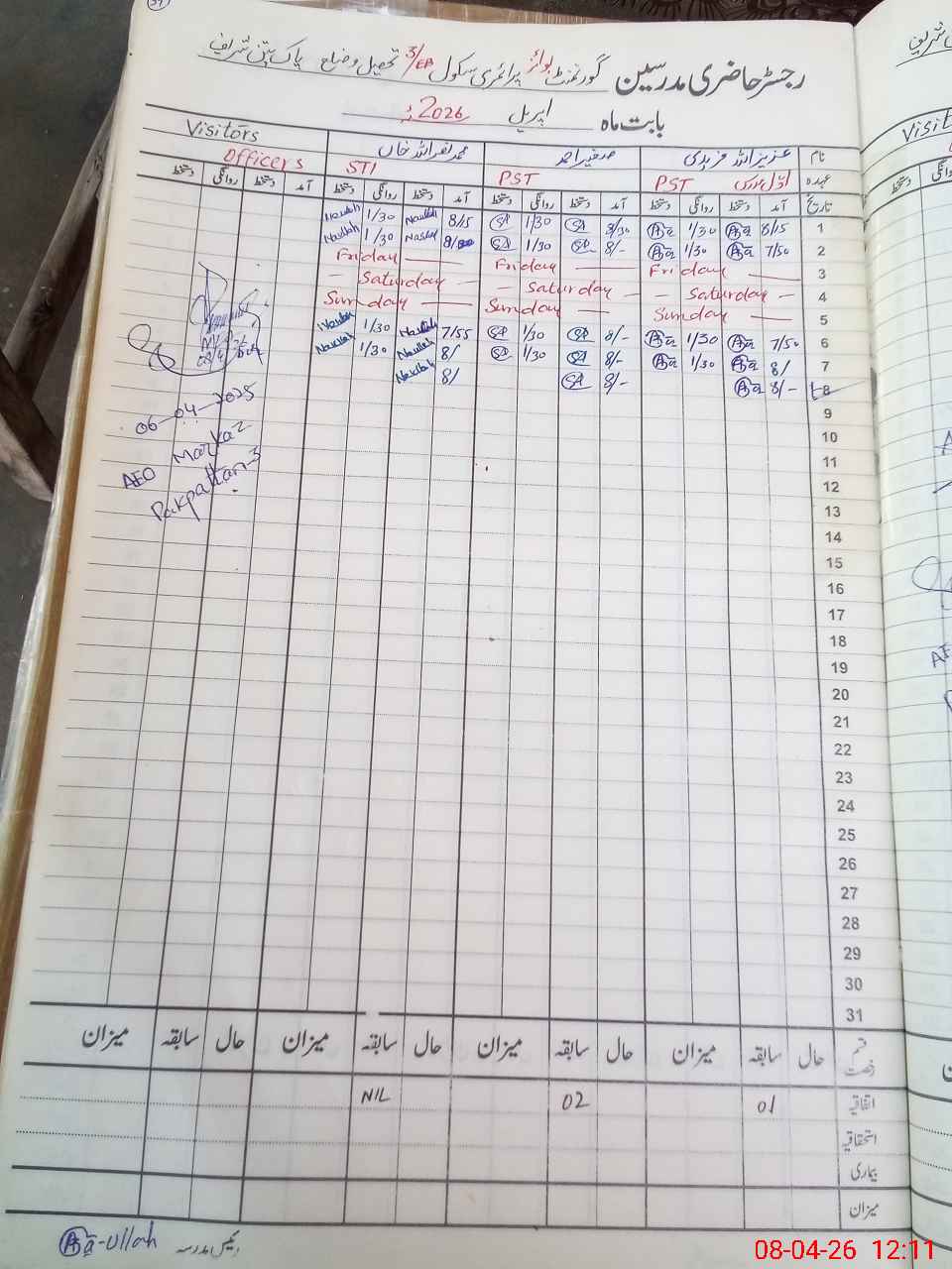 | Name: AZ**** UL**** FA**** Designation: (School Headmaster's/Headmistress's) PST Phone/Cell Number: 03**** |