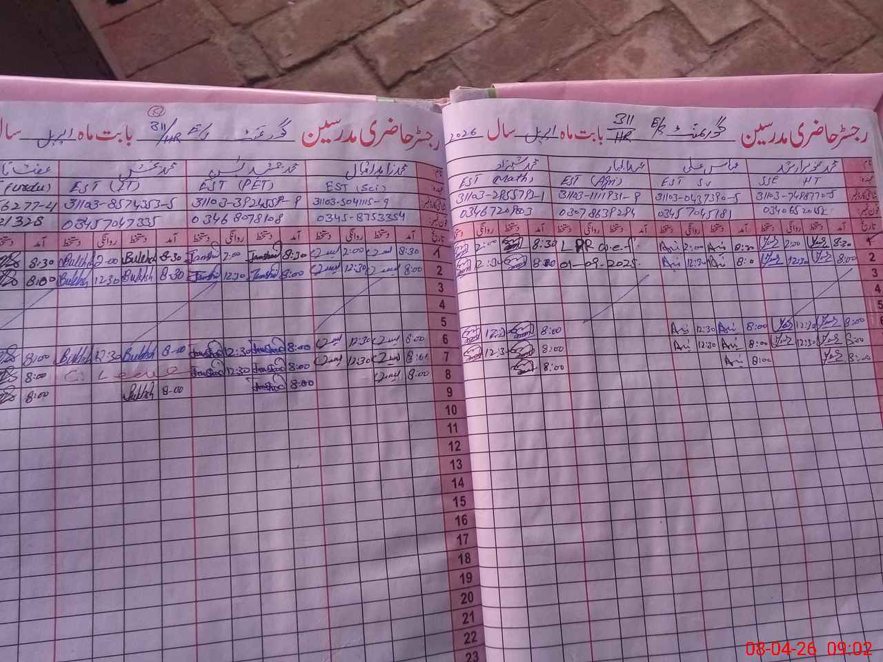 | 31**** | Na**** Mu**** | EST Urdu | Regular | 0 | 0 | 0 | 0 | 0 | 0 | 0 | 0 | 0 | Exam Duty |