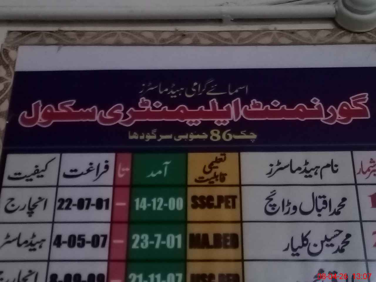 | EMIS Code: 38420116 | Name of School: GES CHAK NO.86 SB | |||