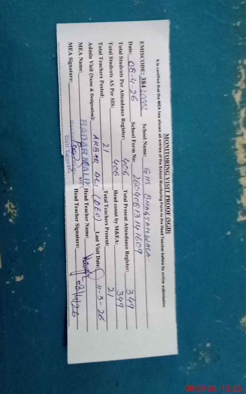 | EMIS Code: 38420002 | Name of School: GHS BHAGTANWALA SARGODHA | |||