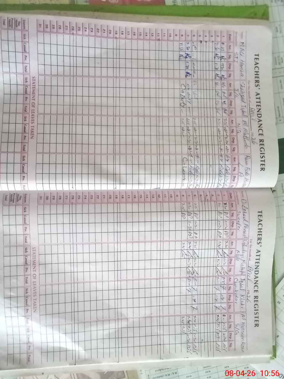 | Leave | Duty | Absent | Maternity | Medical | Ex- Pak |