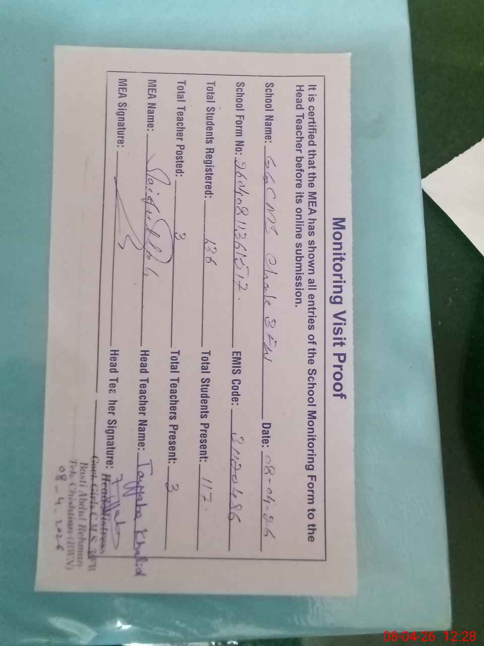 | EMIS Code: 31120486 | Name of School: GGCMS CHAK NO. 3/FW | |||
