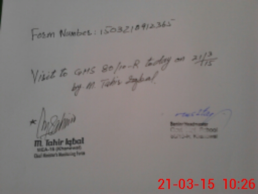 | School Visited by School Health & Nutrition Supervisor (No. of Visits) | 1 | Name1: | Sohail Ahmed | Name2: | |