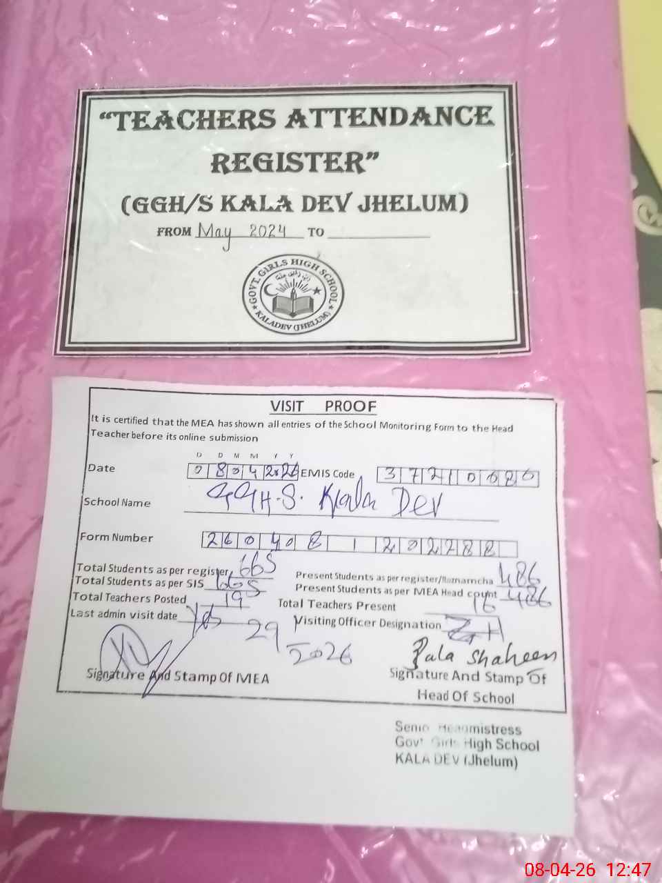 | EMIS Code: 37210080 | Name of School: GGHS KALA DEV | |||