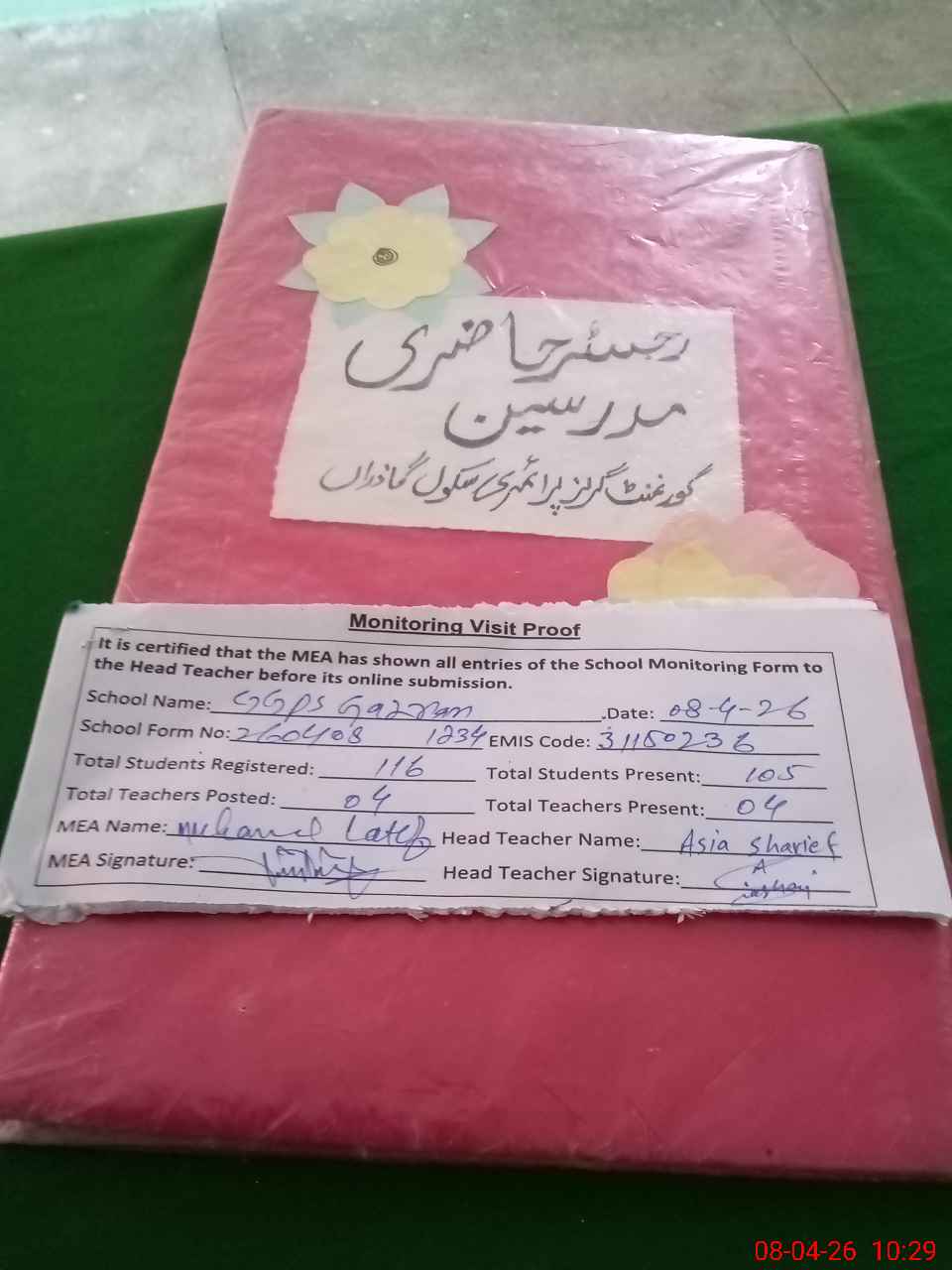 | EMIS Code: 31150236 | Name of School: GGPS GAZRAN | |||