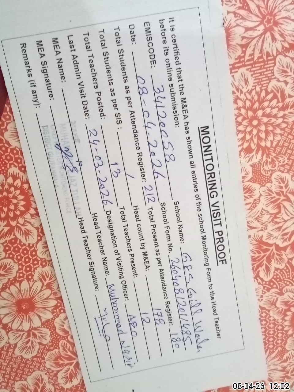 | EMIS Code: 34120058 | Name of School: GES GILL WALA | |||