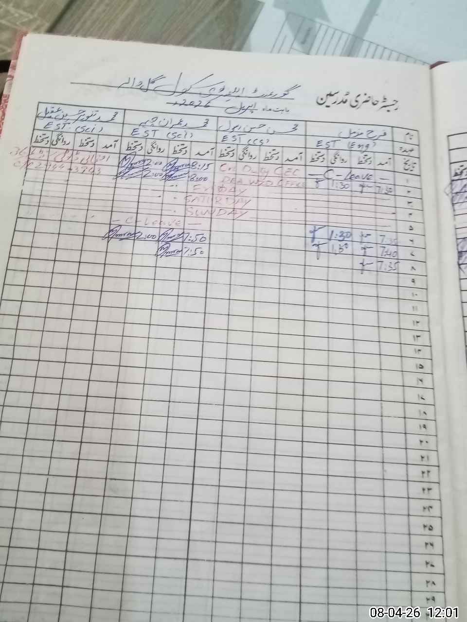 | 34**** | Mu**** Ta**** Hu**** Ak**** | EST (Math) | Regular | 0 | 0 | 0 | 0 | 0 | 0 | 0 | 0 | 0 | Exam Duty |