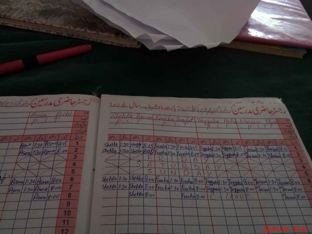 | Leave | Duty | Absent | Maternity | Medical | Ex- Pak |